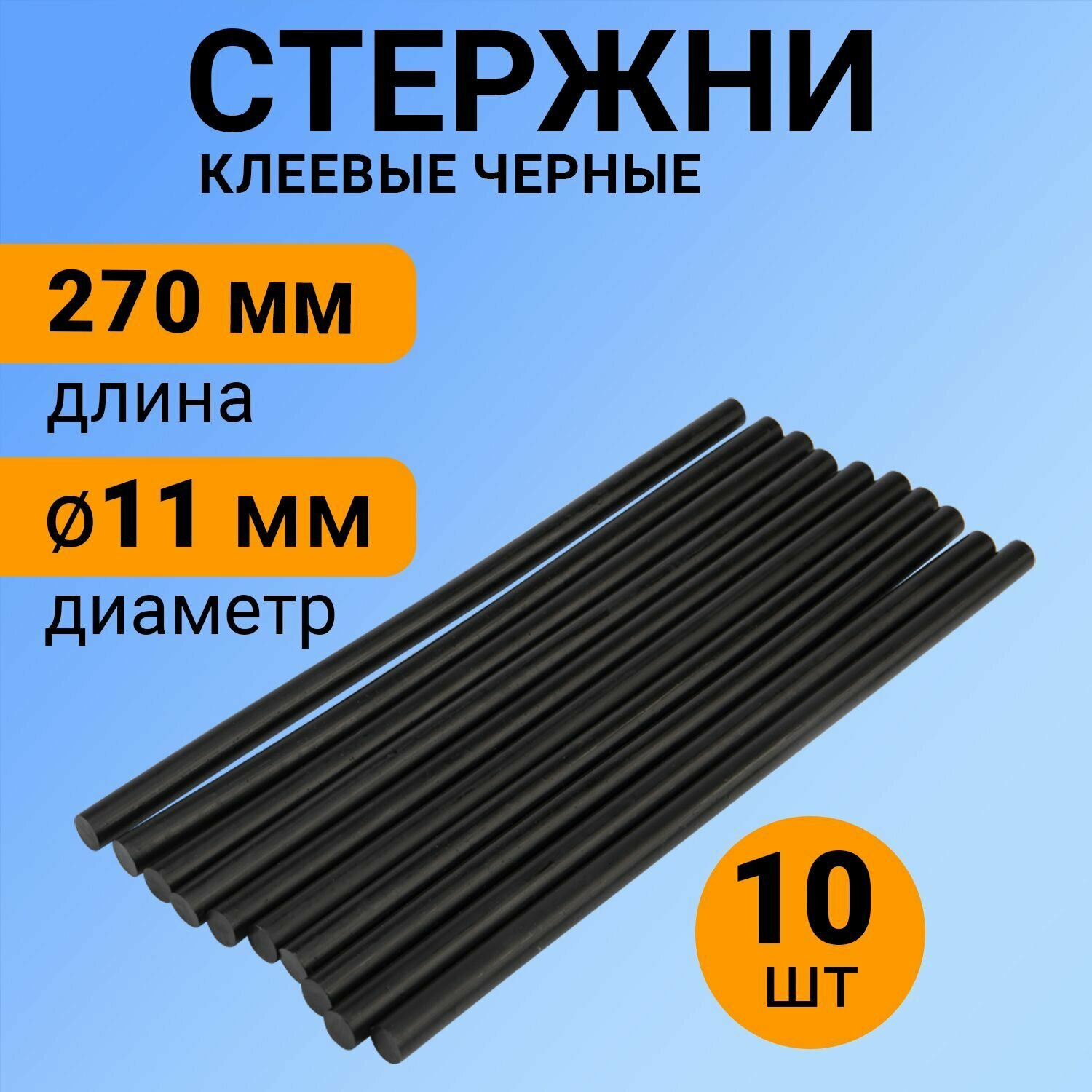 Купить Клеевые стержни 11 мм черные, длина 270 мм, 10 штук