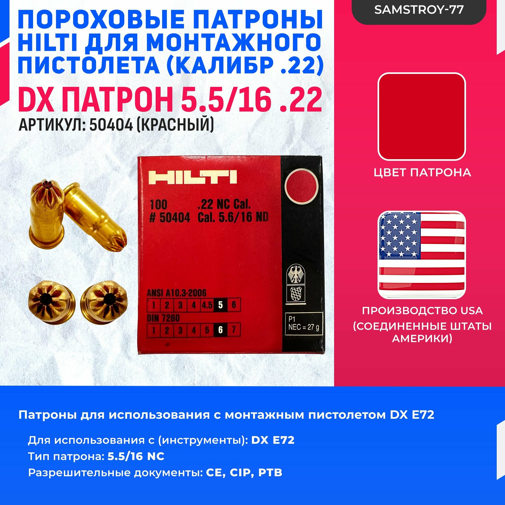 Патроны с порохом для монтажного пистолета HILTI. Красные 5,5/16 (22 калибра) 450+-50Дж(100шт) интересное: