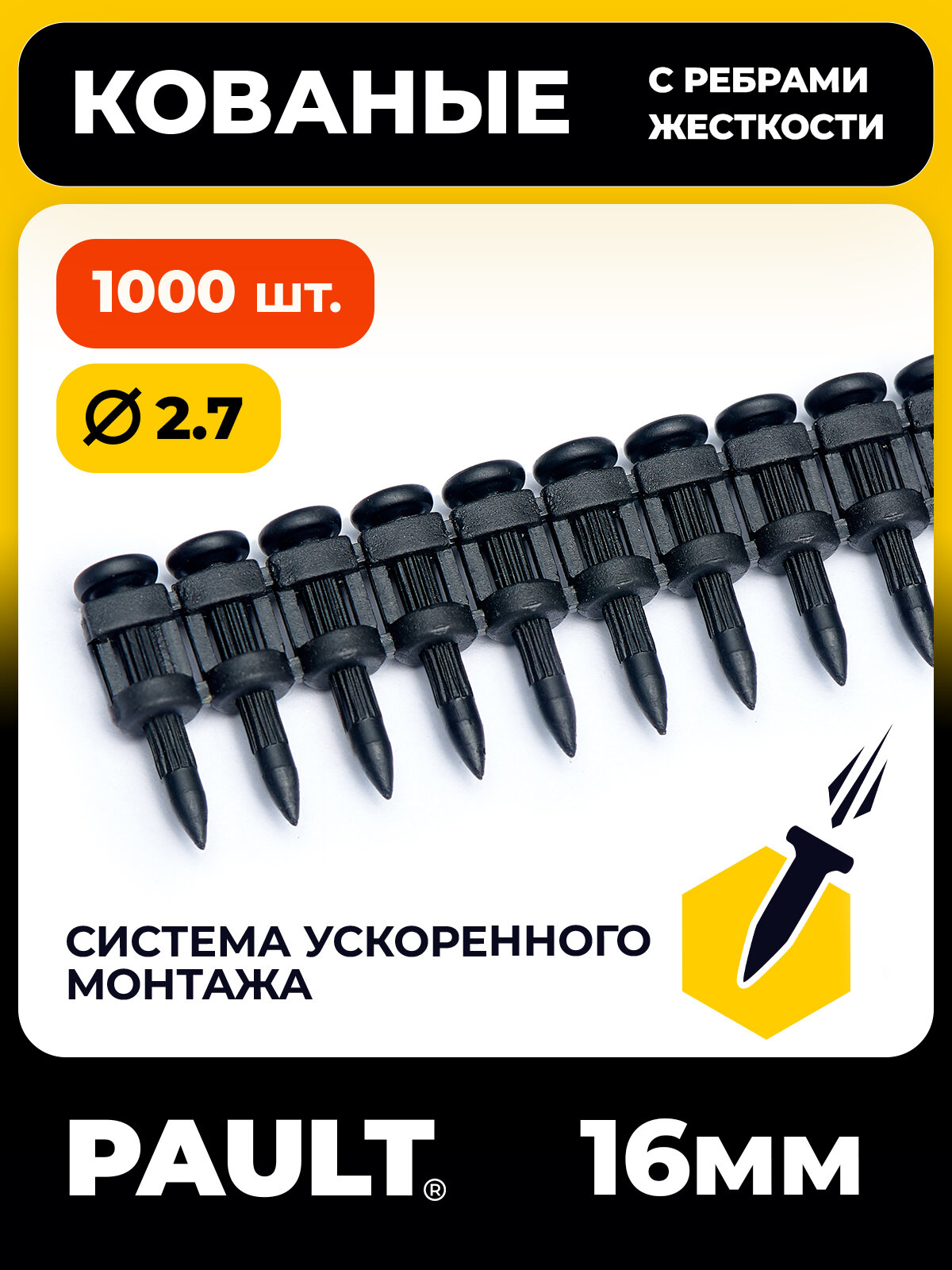 Гвозди с ребрами жесткости PAULT 2.7*16 мм для монтажного пистолета 1000 шт. интересное: