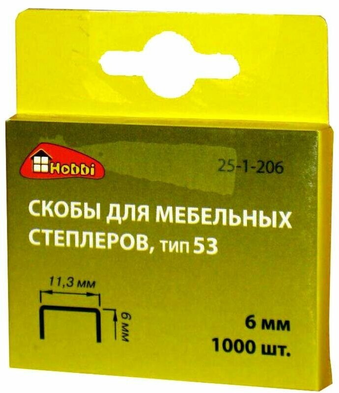 Купить Скобы, 6 мм, для мебельного степлера, тип 53, 1000 шт