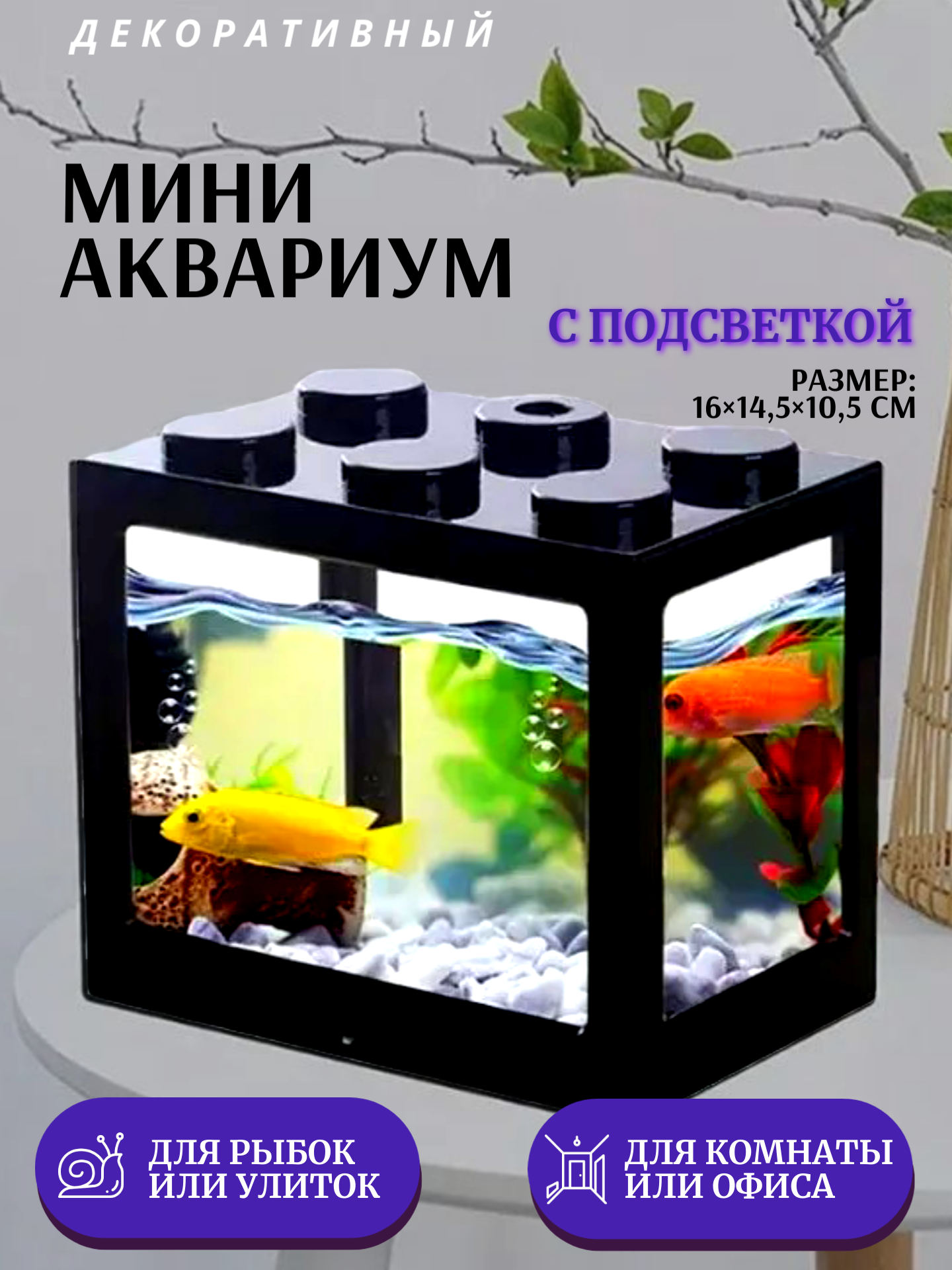 СохранитьДекоративный мини аквариум с подсветкой, 16x14.5 см черный / Акриловый аквариум интересное: