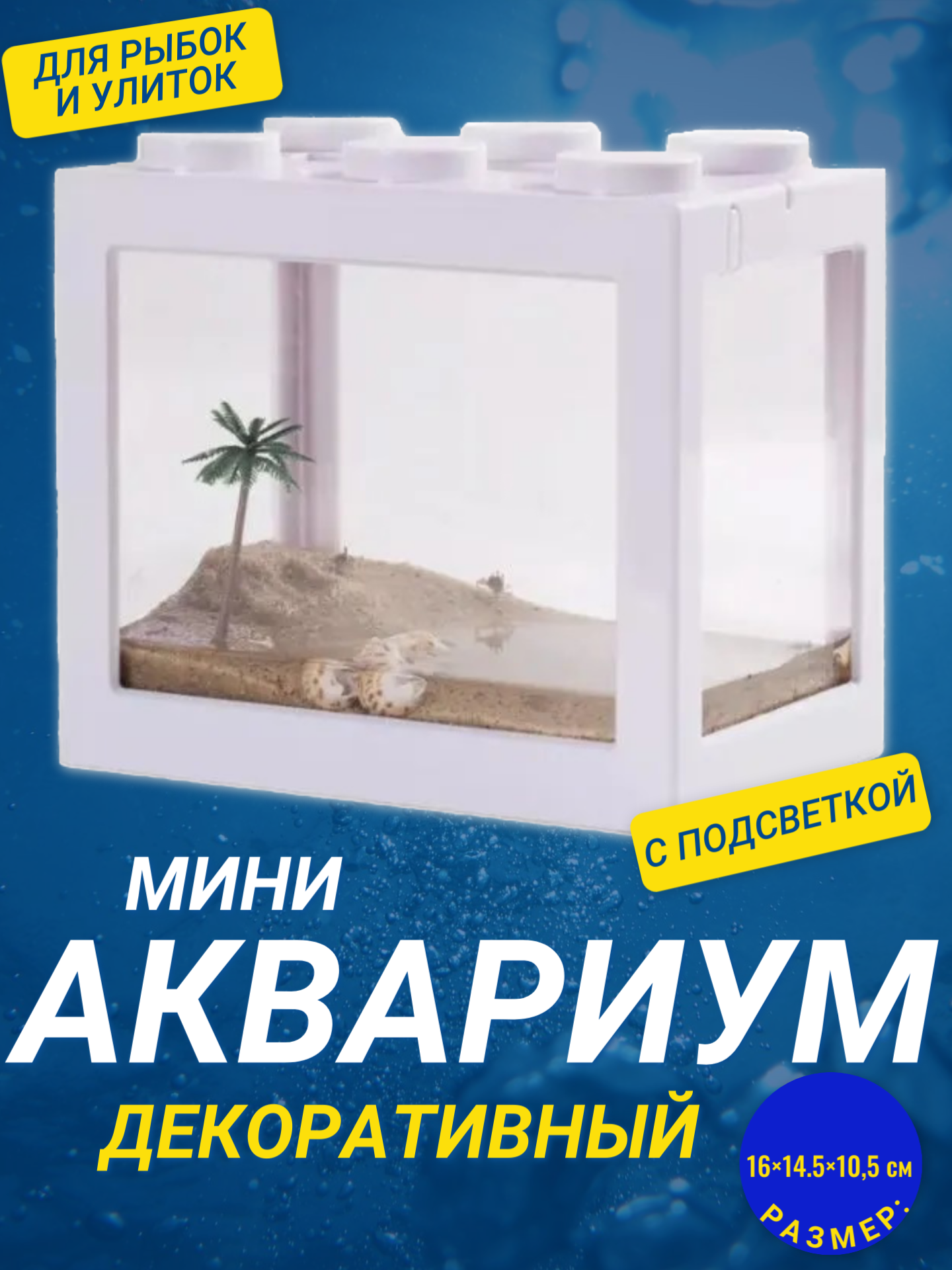 СохранитьДекоративный мини аквариум с подсветкой, 16x14.5 см белый / Акриловый аквариум интересное: