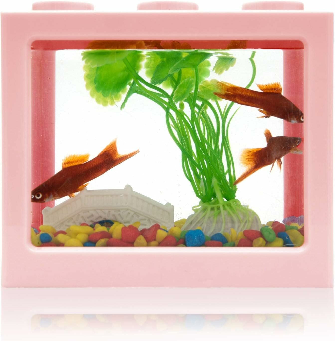 СохранитьДекоративный мини аквариум с подсветкой, 16x14.5 см розовый/ Акриловый аквариум интересное: