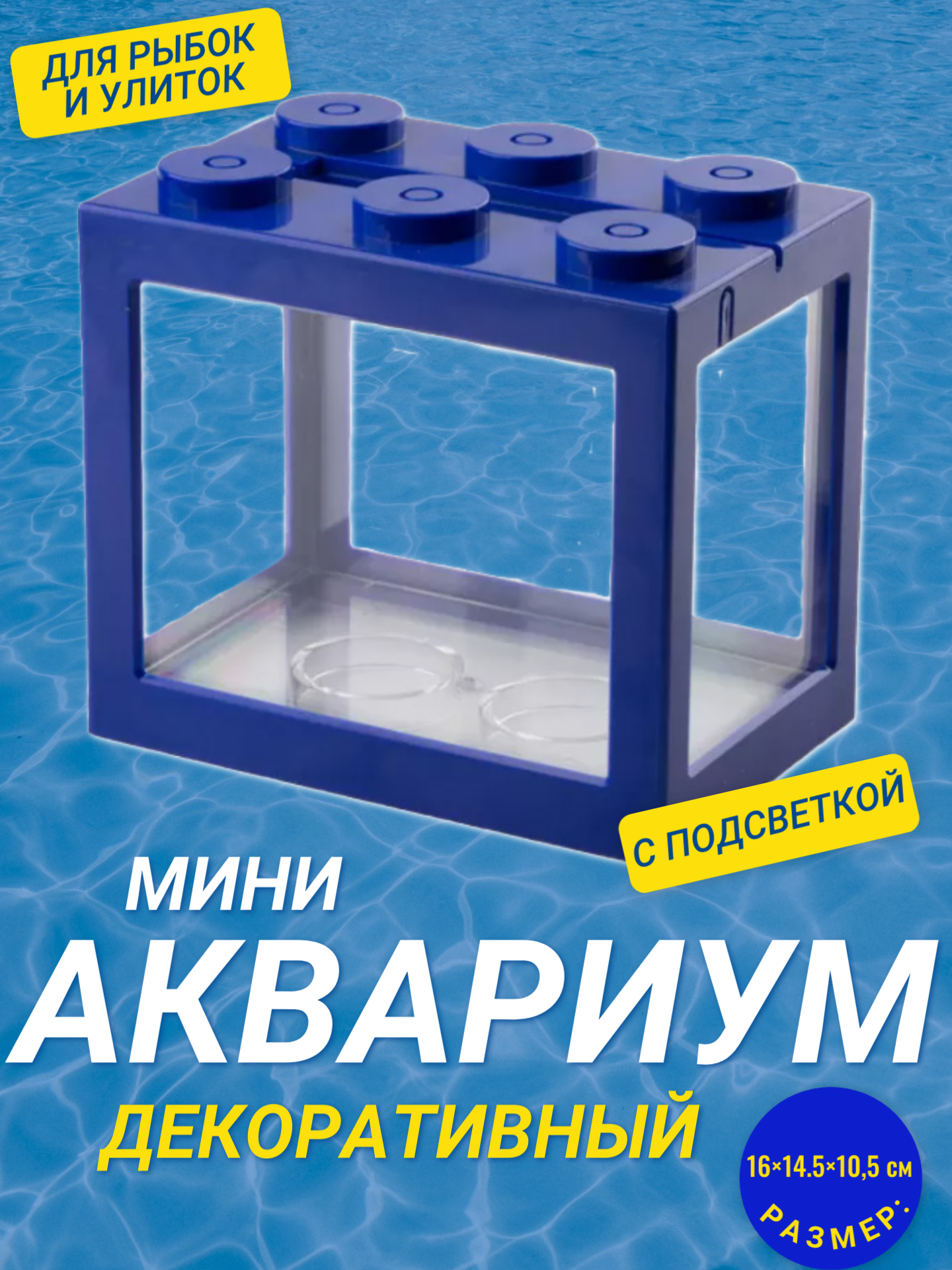 Купить Декоративный мини аквариум с подсветкой, 16x14.5 см синий / Акриловый аквариум