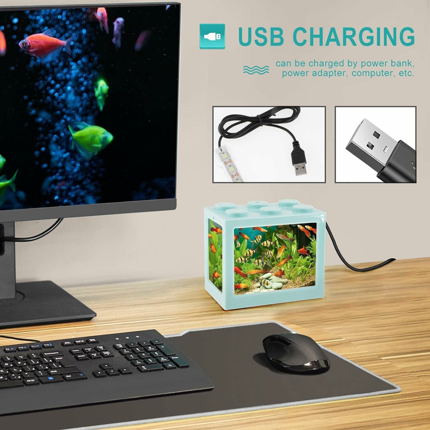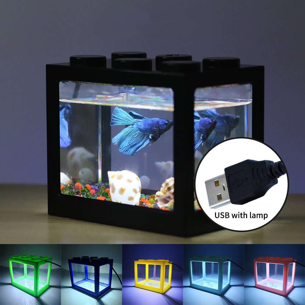 СохранитьДекоративный мини аквариум с подсветкой, 16x14.5 см голубой / Акриловый аквариум интересное: