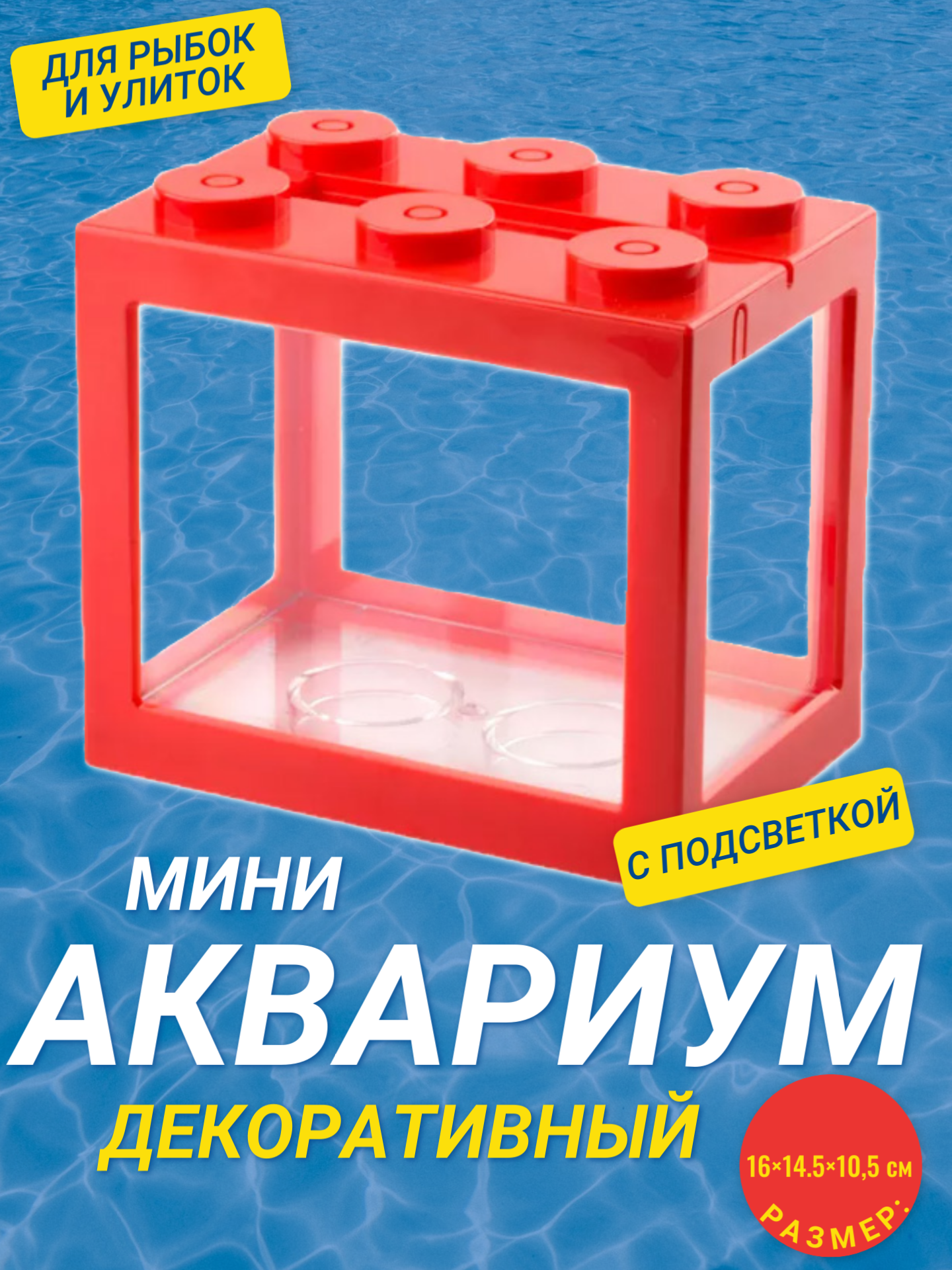 Купить Декоративный мини аквариум с подсветкой, 16x14.5 см красный / Акриловый аквариум