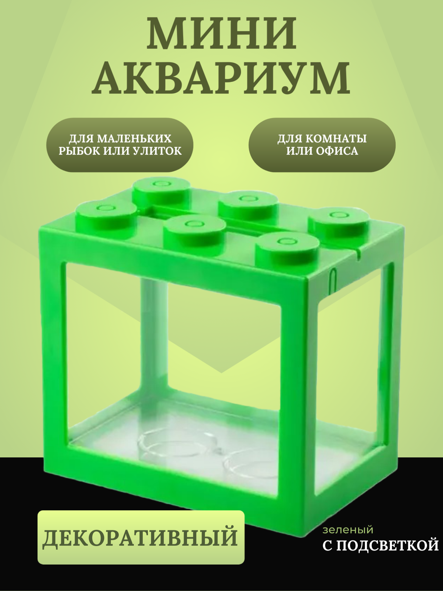 Купить Декоративный мини аквариум с подсветкой, 16x14.5 см зеленый / Акриловый аквариум