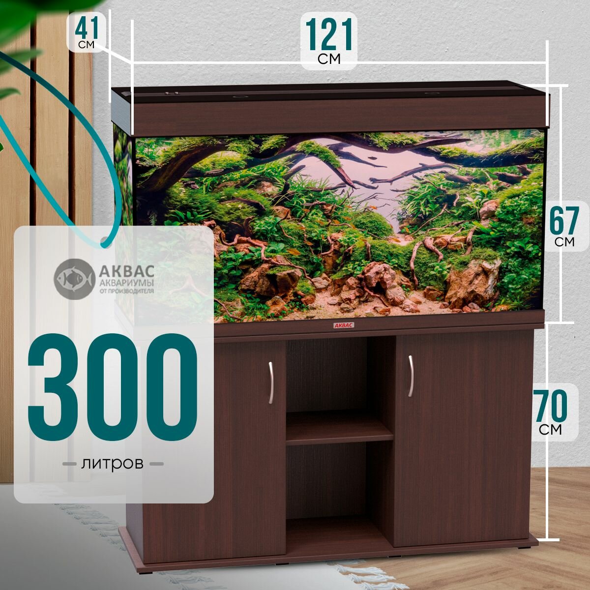 Аквариум 300 литров с тумбой крышкой и освещением (121х41х67 см) Аквас