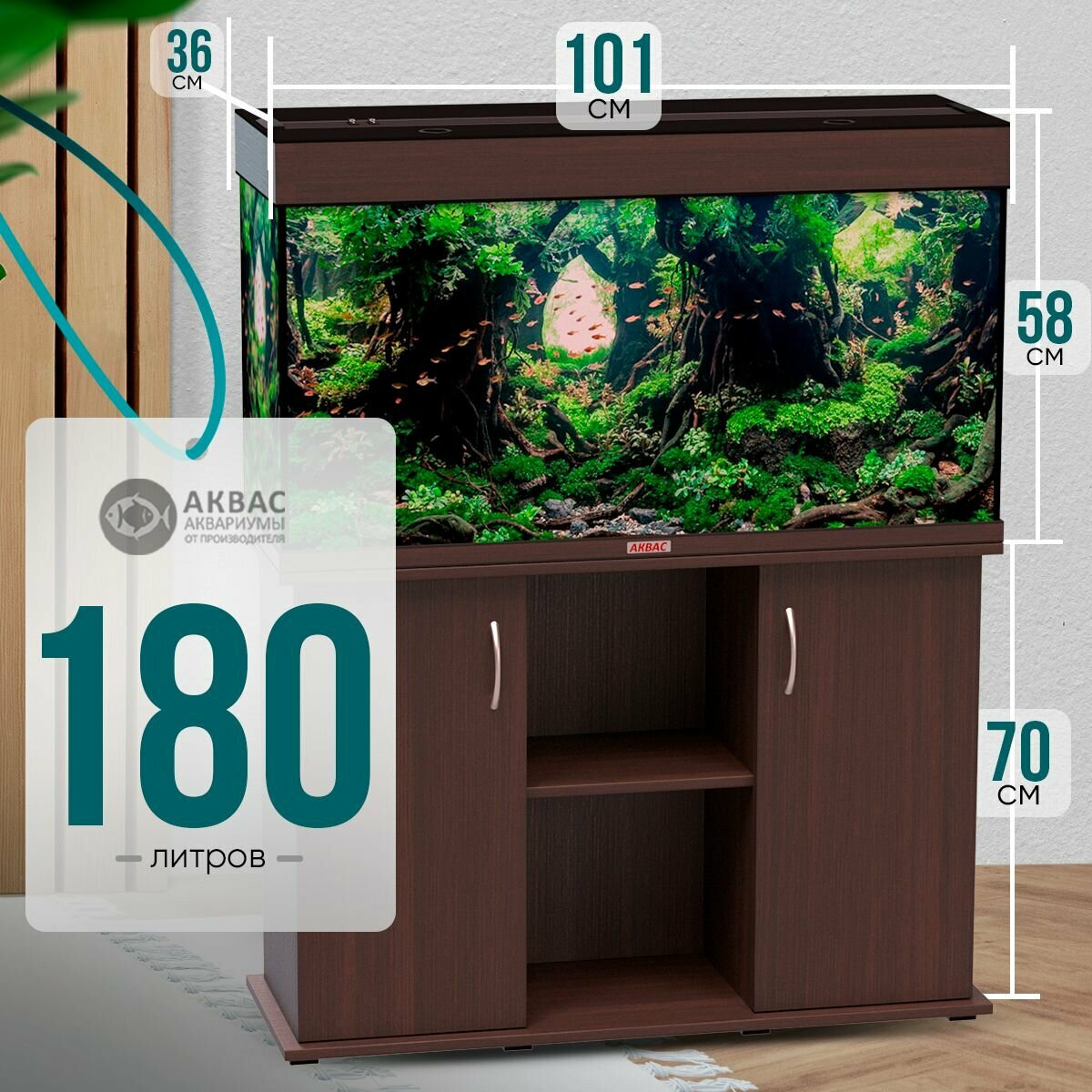 Купить Аквариум 180 литров с тумбой крышкой и освещением (101*36*58 см) Аквас