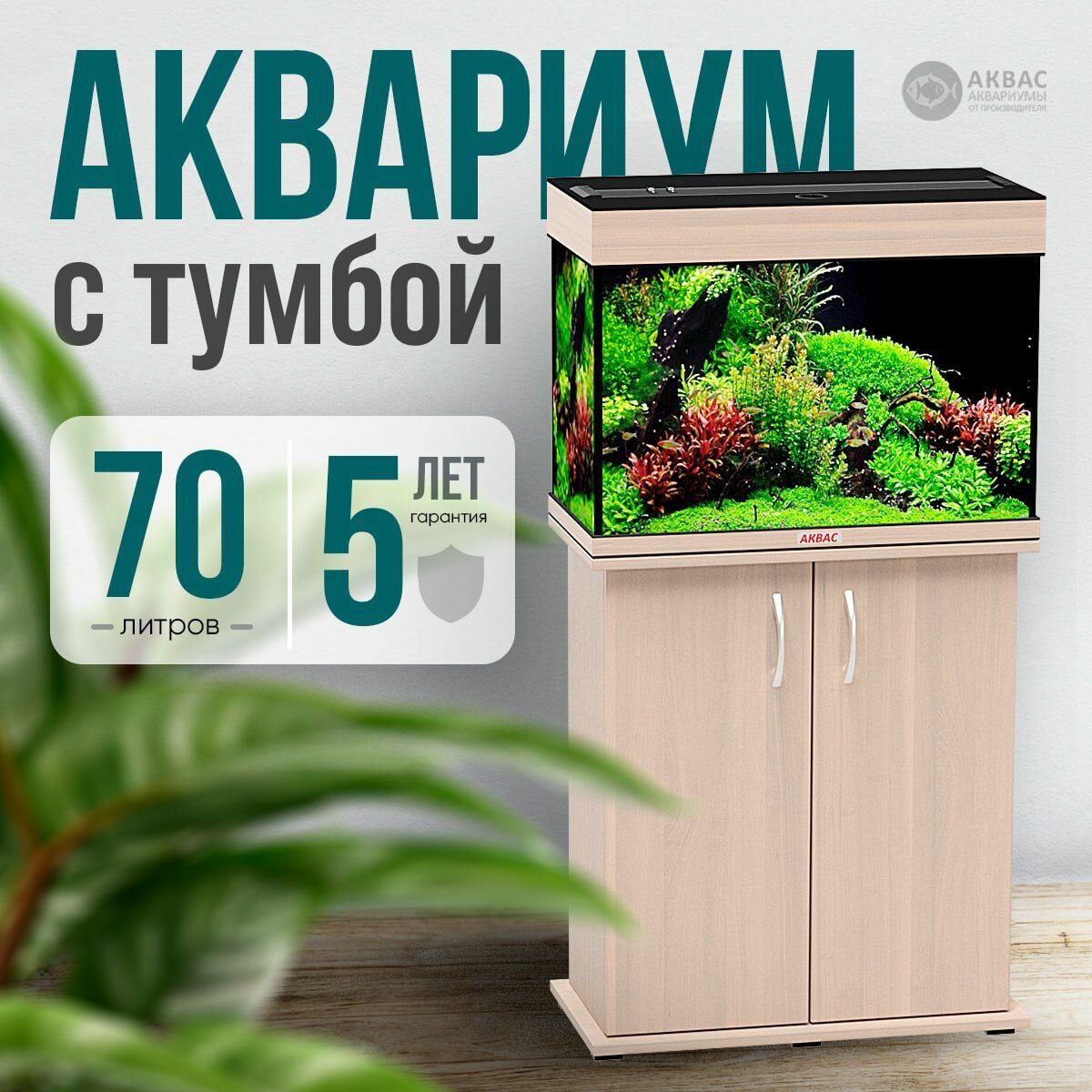 Аквариум 70 литров с тумбой крышкой и освещением (61х31х46 см) Аквас