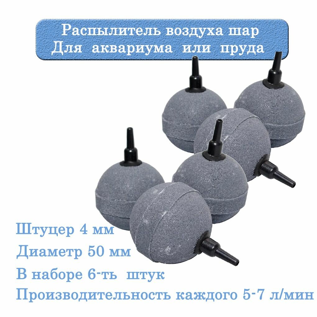 Набор распылителей воздуха для аквариума или пруда, шар, 50*50*4мм (6-ть шт.) интересное: