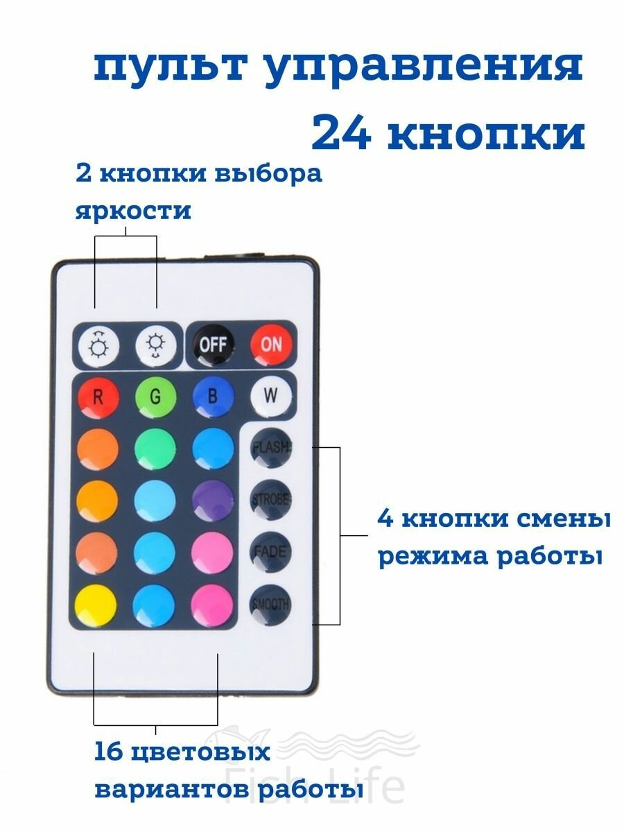 | Особенности | пульт ДУ / разноцветный |