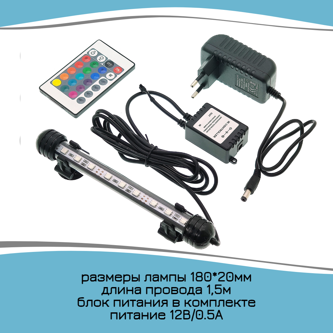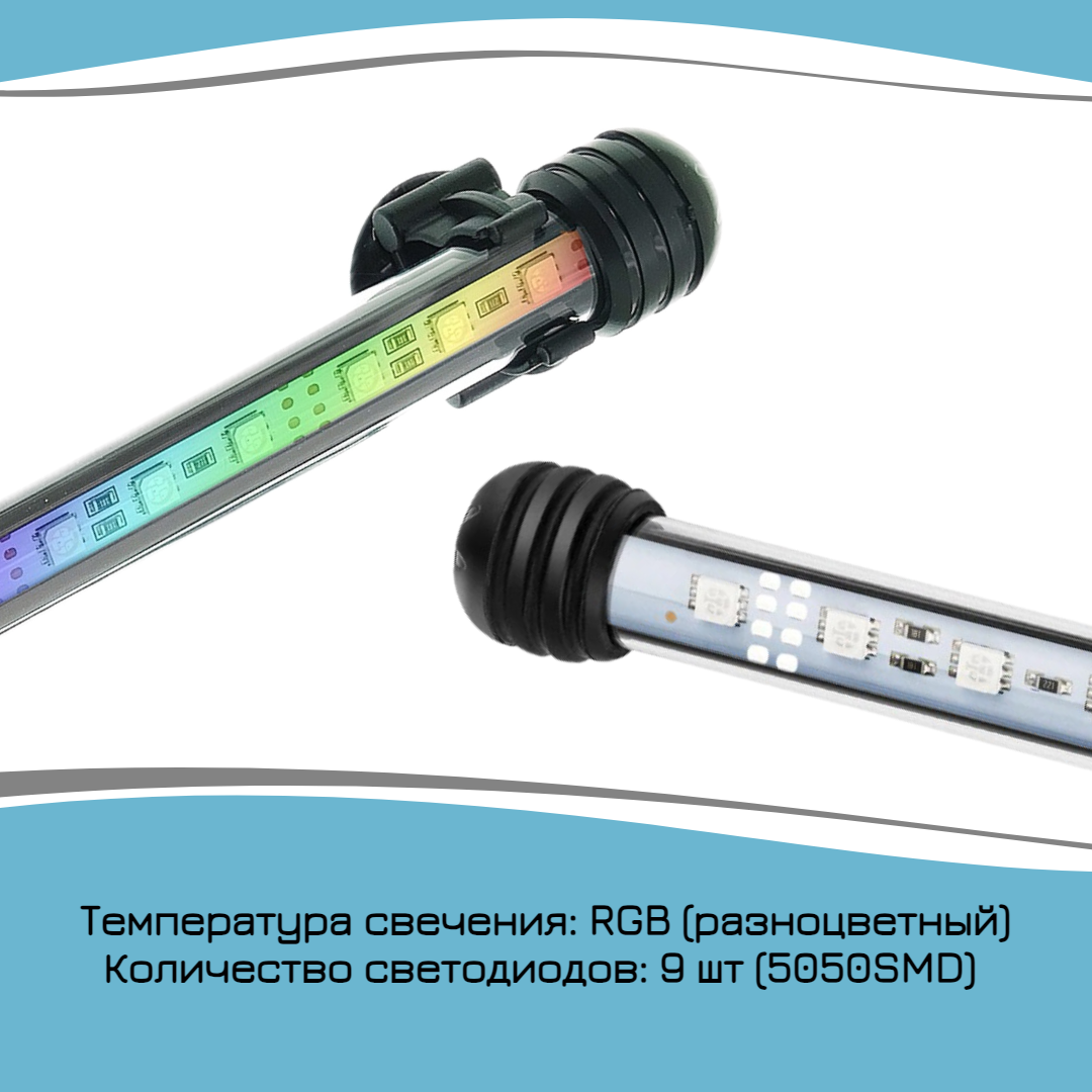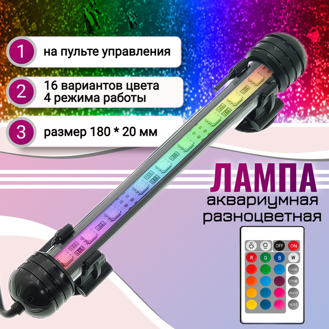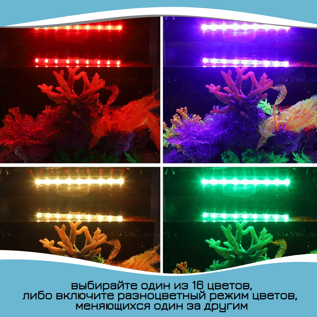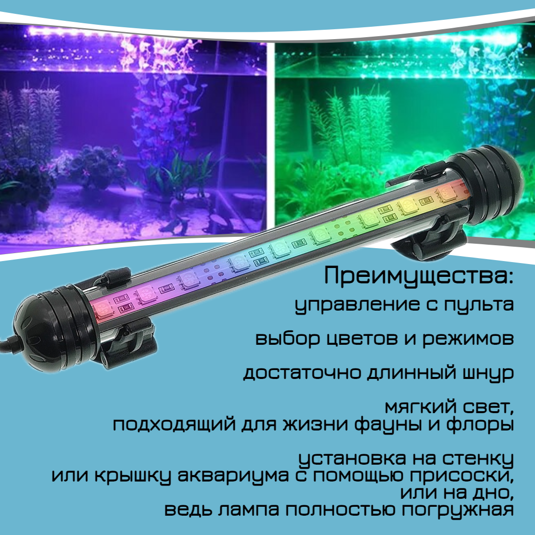 Лампа для аквариума светодиодная RGB 18 см, с пультом, погружная, на присосках интересное: