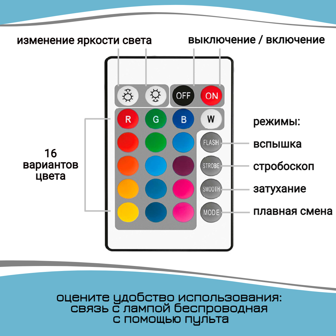 | Особенности | возможность вращения / для роста растений / естественный свет / пульт ДУ / разноцветный |