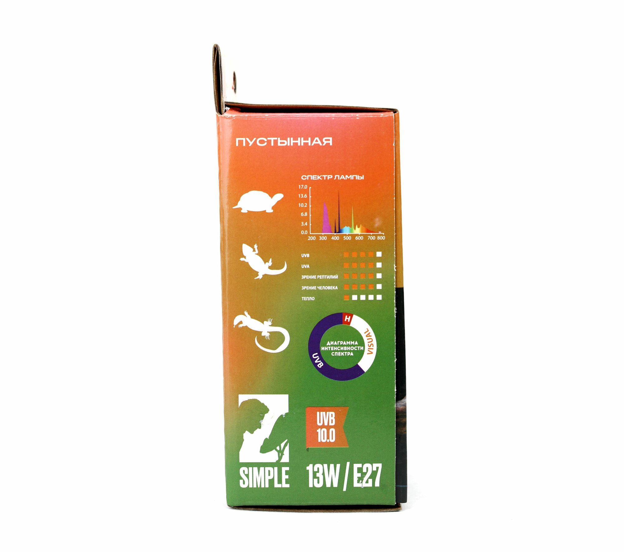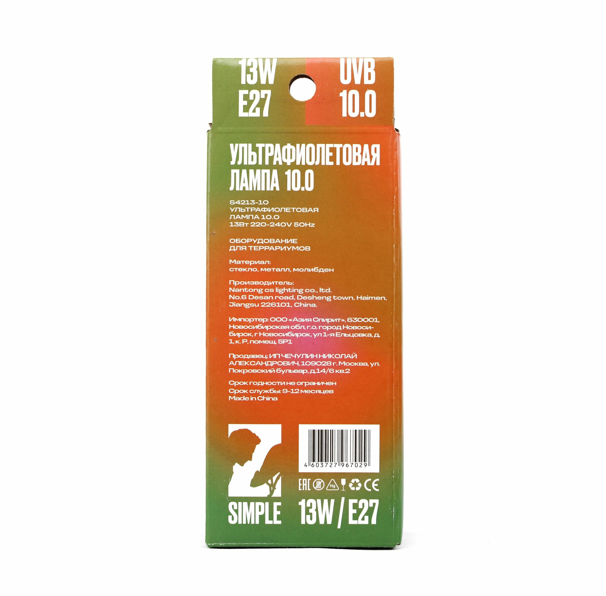 | Подробная комплектация | Упаковка - 1 шт., Ультрафиолетовая лампа UVB 10.0 для террариума от Simple Zoo - 1 шт. |