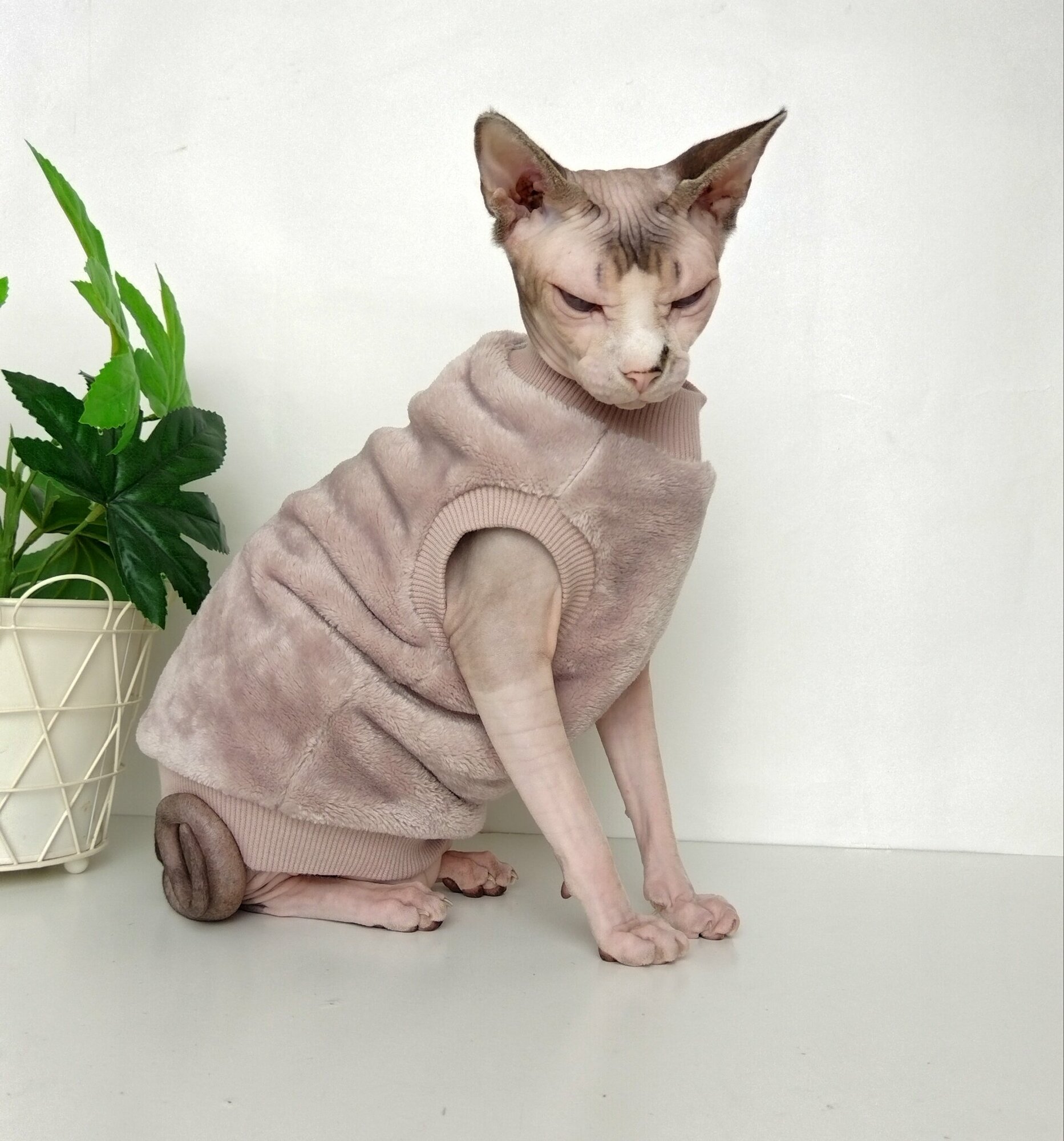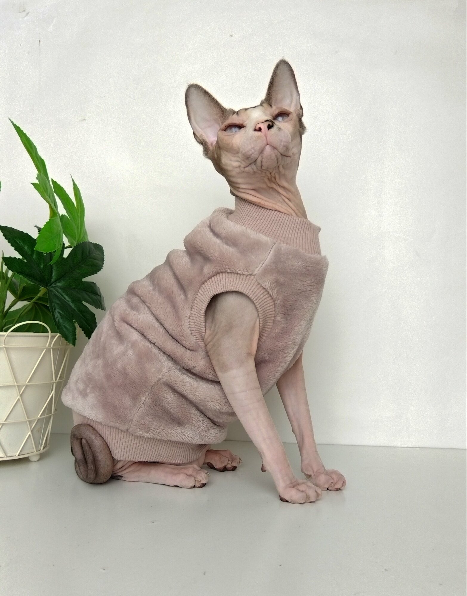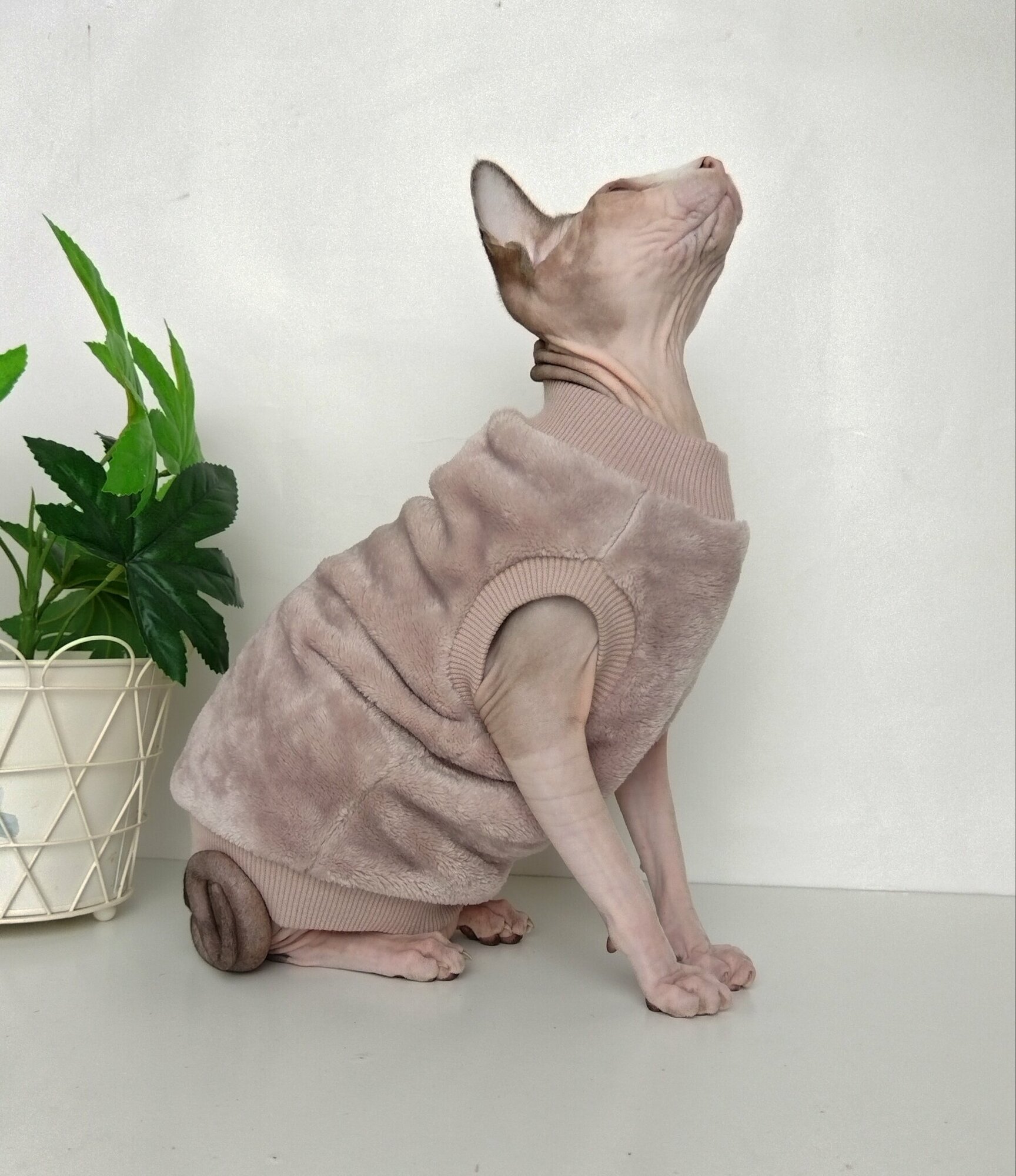 Толстовка, свитер, шуба для кошек сфинкс, размер 30 (длина спины 30см), цвет пыльная роза/ Одежда для кошек сфинкс / одежда для животных интересное: