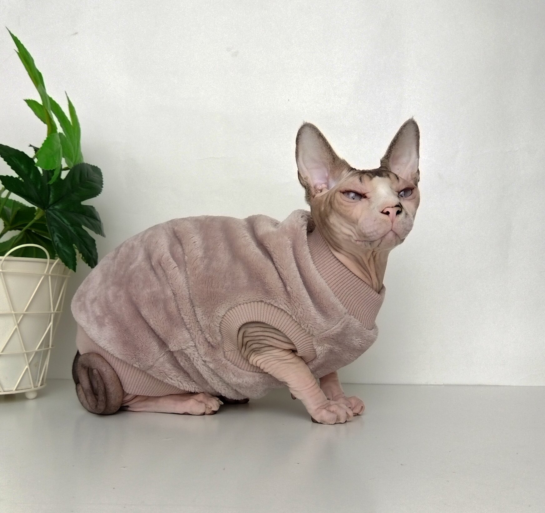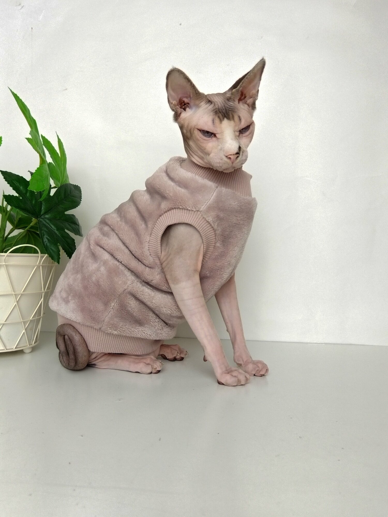 Толстовка, свитер, шуба для кошек сфинкс, размер 40 (длина спины 40см), цвет пыльная роза/ Одежда для кошек сфинкс / одежда для животных
