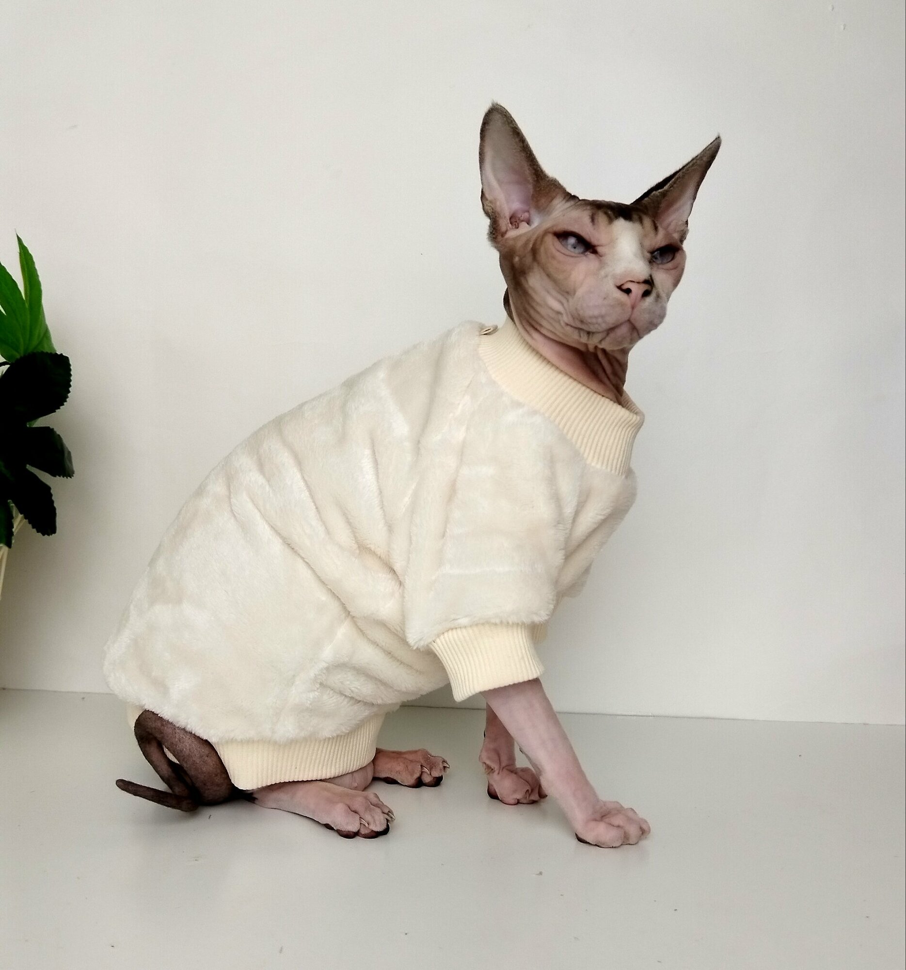 Толстовка, свитер, шуба для кошек сфинкс, размер 40 (длина спины 40см), цвет молочный/ одежда для кошек сфинкс / одежда для животных