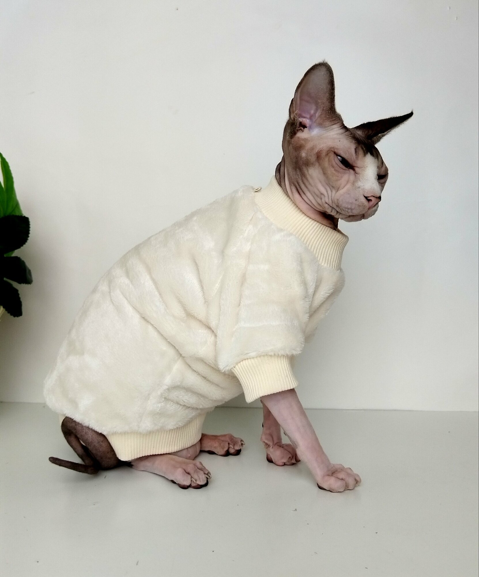 Толстовка, свитер, шуба для кошек сфинкс, размер 35 (длина спины 35см), цвет молочный/ одежда для кошек сфинкс / одежда для животных