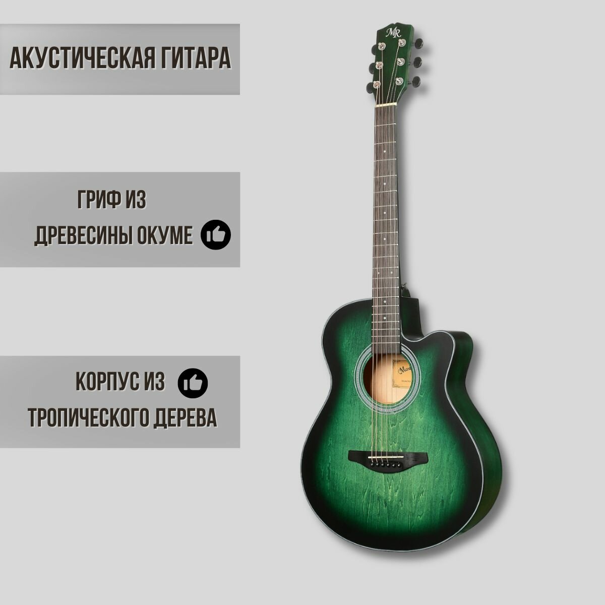 СохранитьАкустическая гитара MARTIN ROMAS MR-4000 TGR из тропического дерева с вырезом цвет матовый зеленый берст транспарент прозрачный интересное: