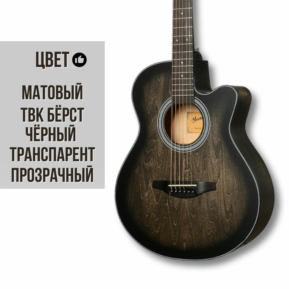 СохранитьАкустическая гитара MARTIN ROMAS MR-4000 TBK из тропического дерева с вырезом цвет черный матовый транспарент интересное: