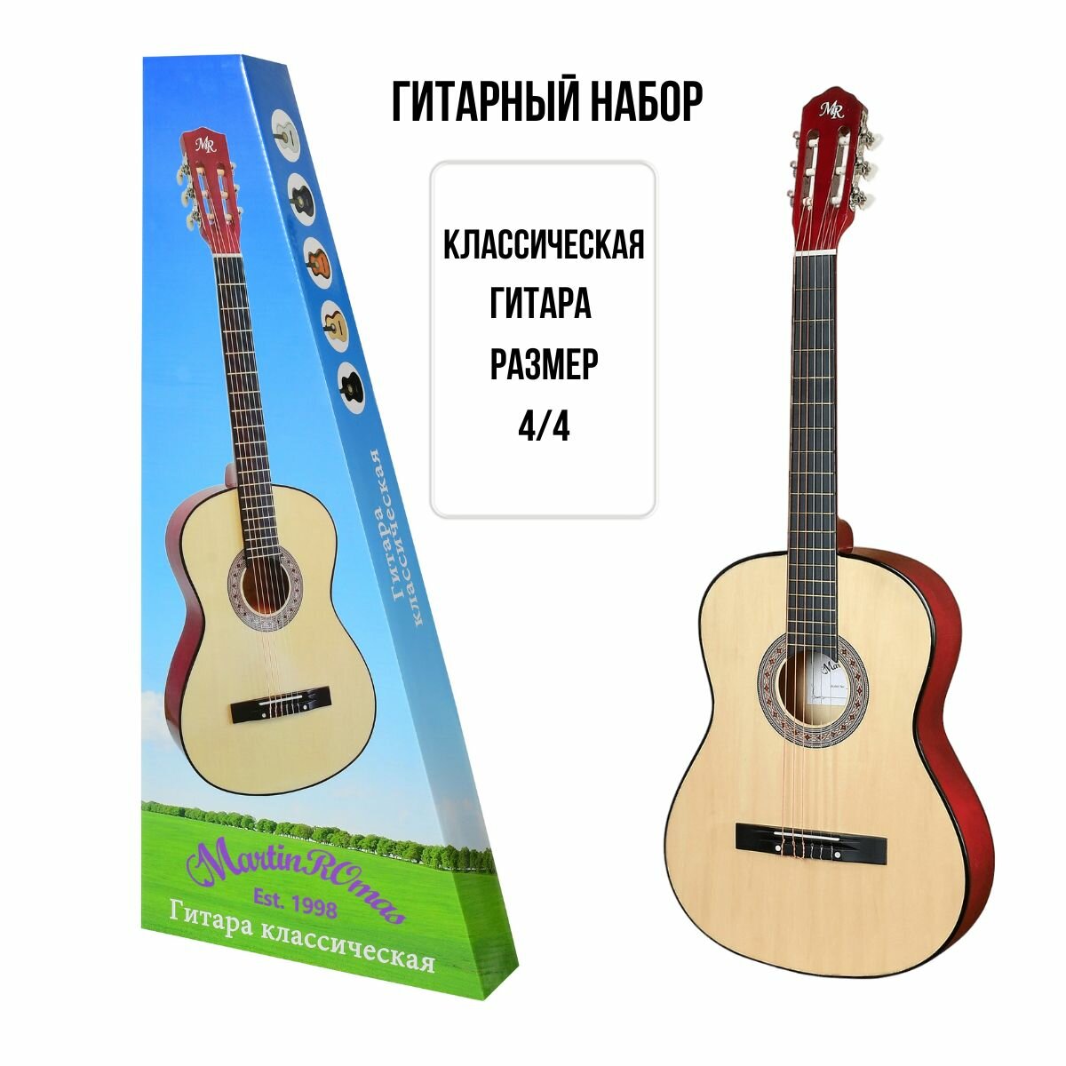 Набор Гитара классическая MARTIN ROMAS PACK JR-390 NAT размер 4/4 цвет натуральный и аксессуары интересное: