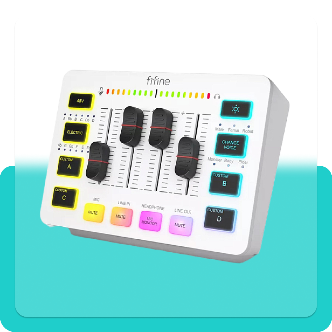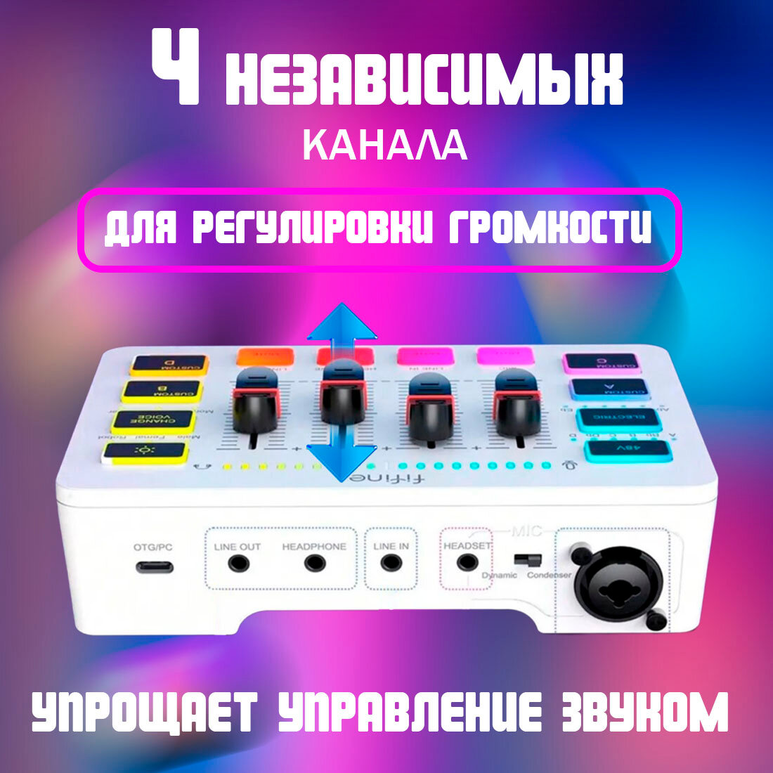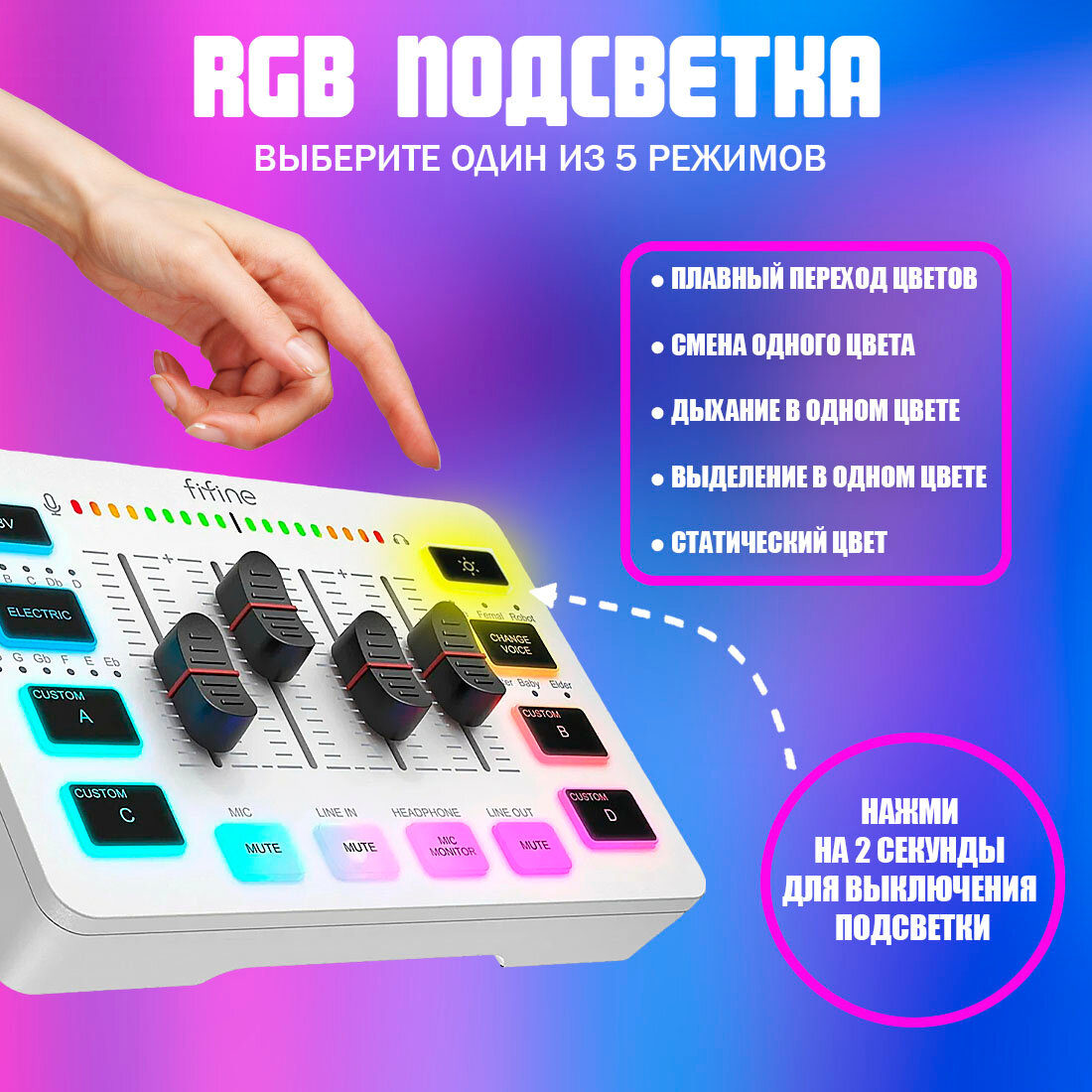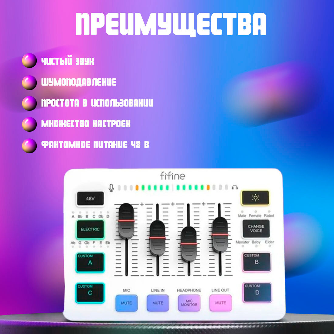 Микшер / Звуковая карта Fifine mixer SC3 (Белый) / звуковые эффекты / RGB подсветка