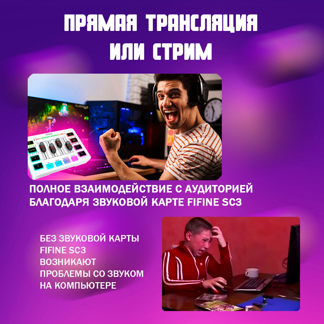 Микшер / Звуковая карта Fifine Mixer SC3 (черный) / звуковые эффекты / RGB подсветка