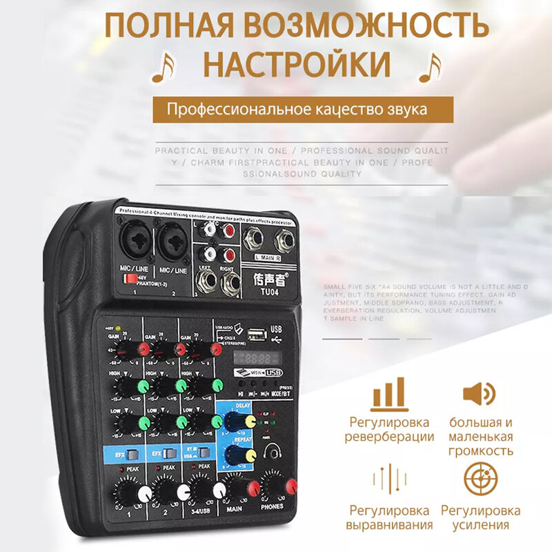 Микшерный пульт с эквалайзером Ground BT-154Z 4 канала, цифровой микшерный пульт интересное: