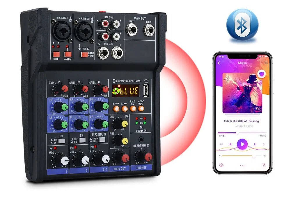 Микшер 4-полосный с беспроводными микрофонами с Bluetooth и USB TKL R2 интересное:
