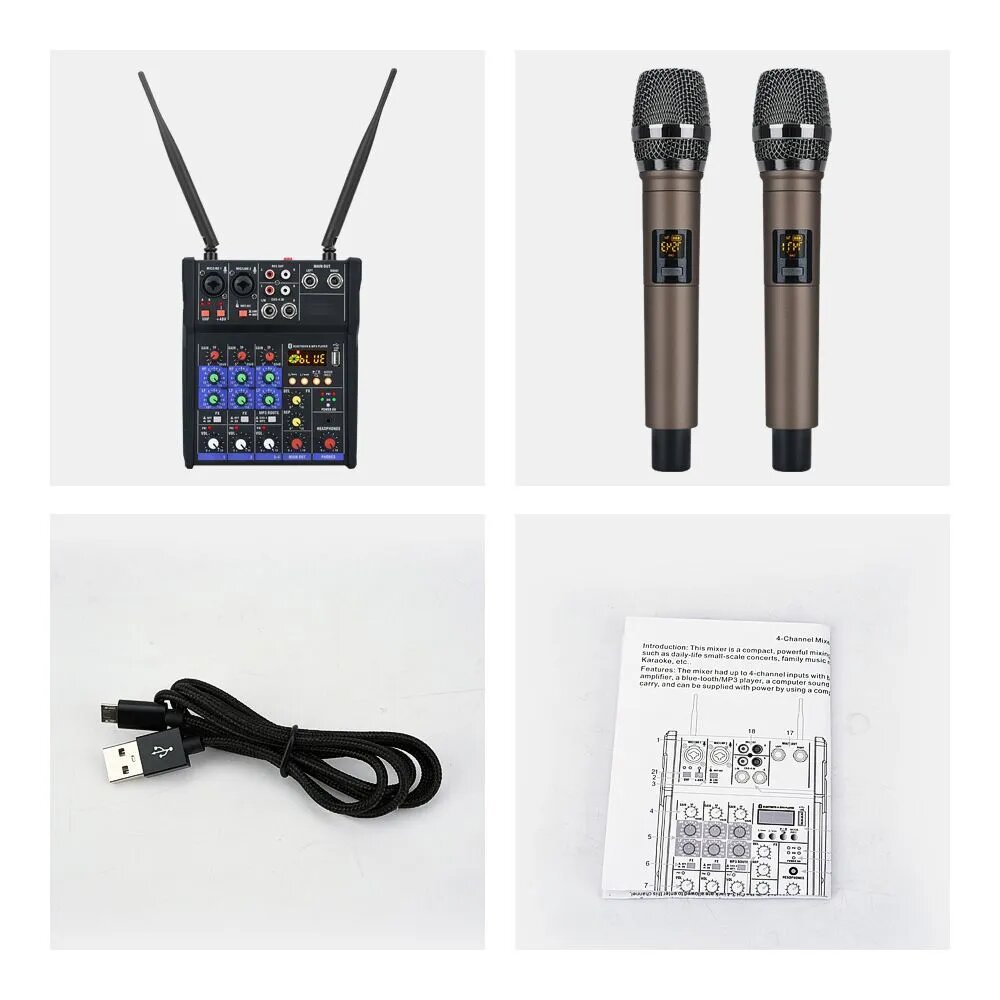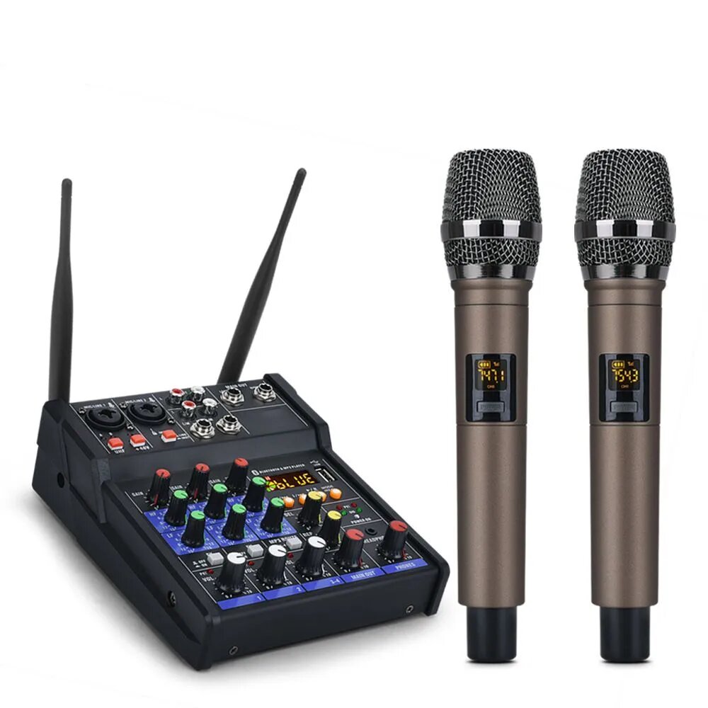 Купить Микшер 4-полосный с беспроводными микрофонами с Bluetooth и USB TKL R2