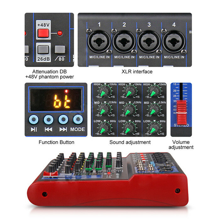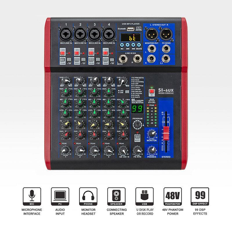 Ниже Вы можете прочитать отзывы на Микшерный пульт 6 каналов + USB + bluetooth, ознакомится с подробными характеристиками, посмотреть интересные обзоры и фотографии на Микшерный пульт 6 каналов + USB + bluetooth.