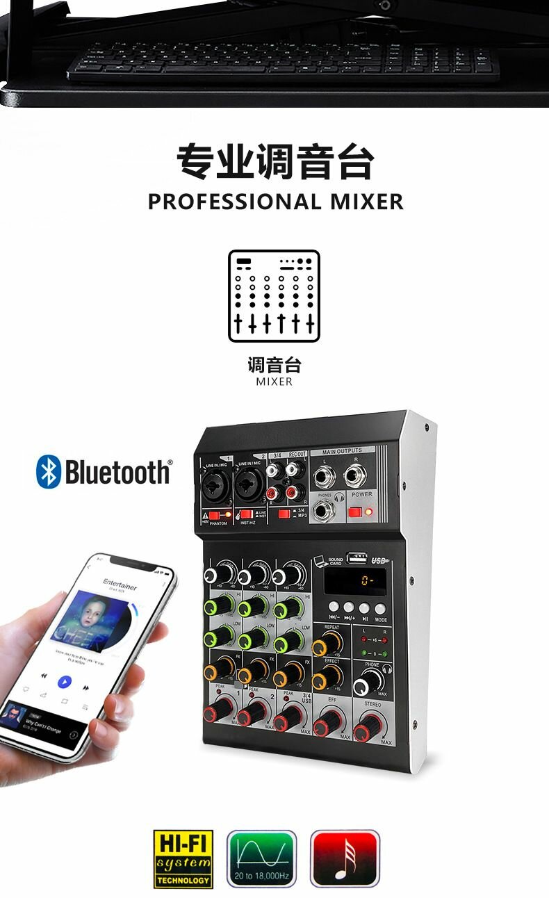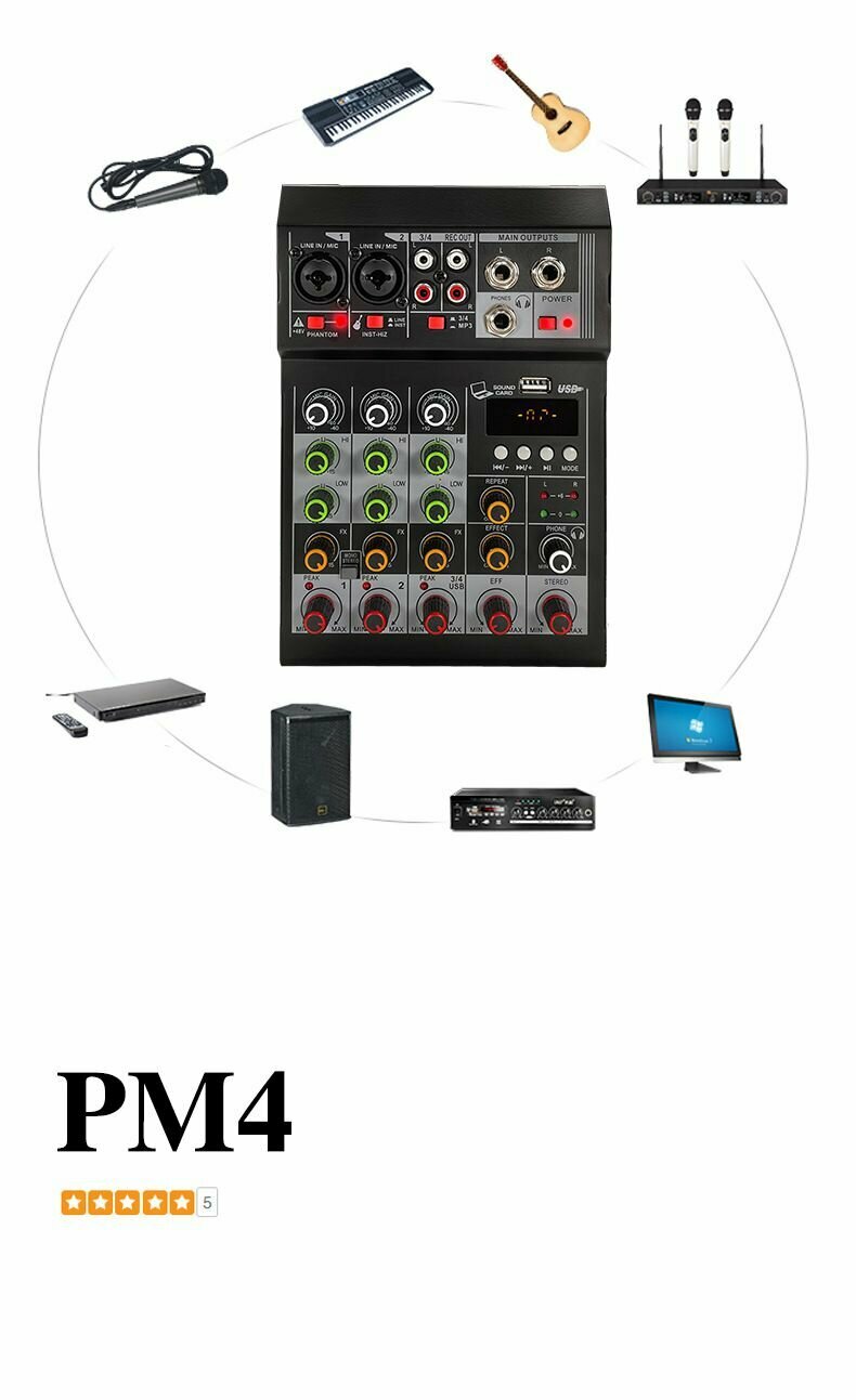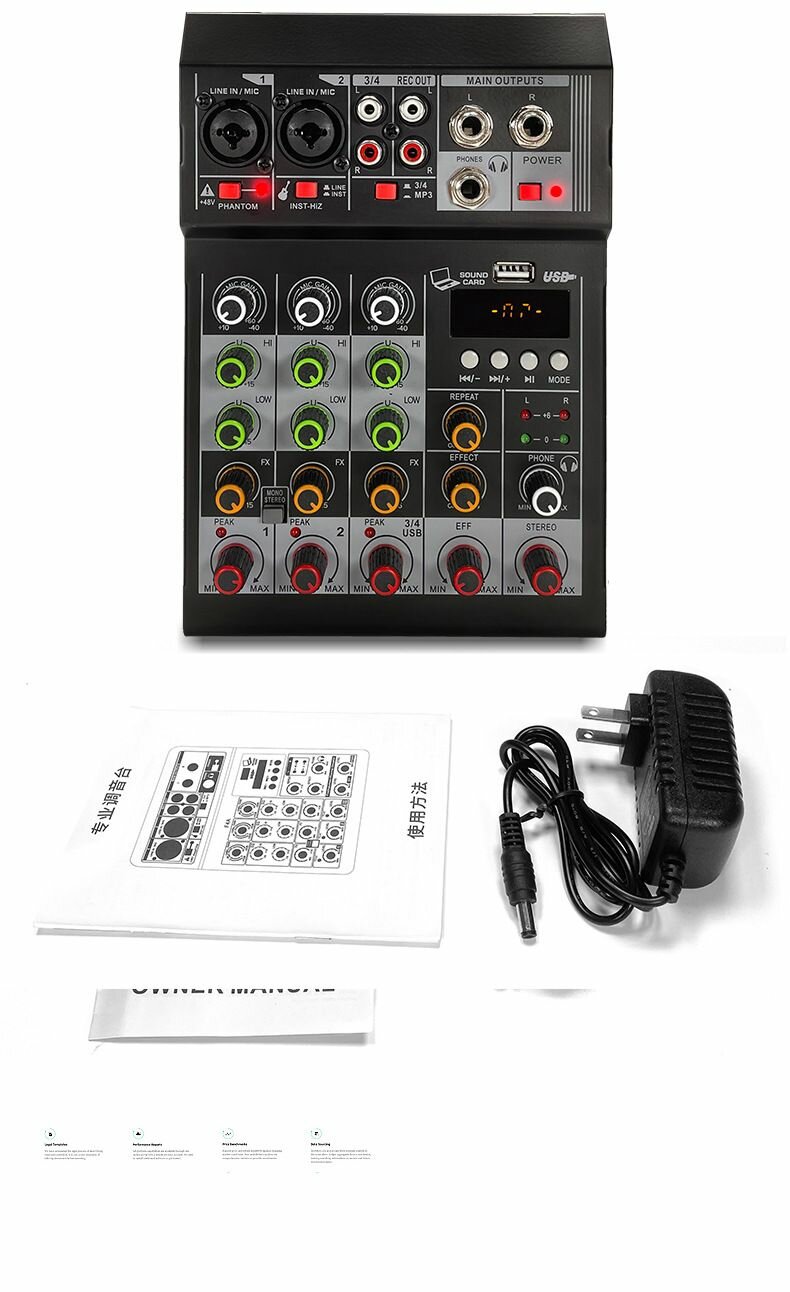 JIY Professional 4-канальный микшерный пульт Мини-USB-микшер со звуковой картой