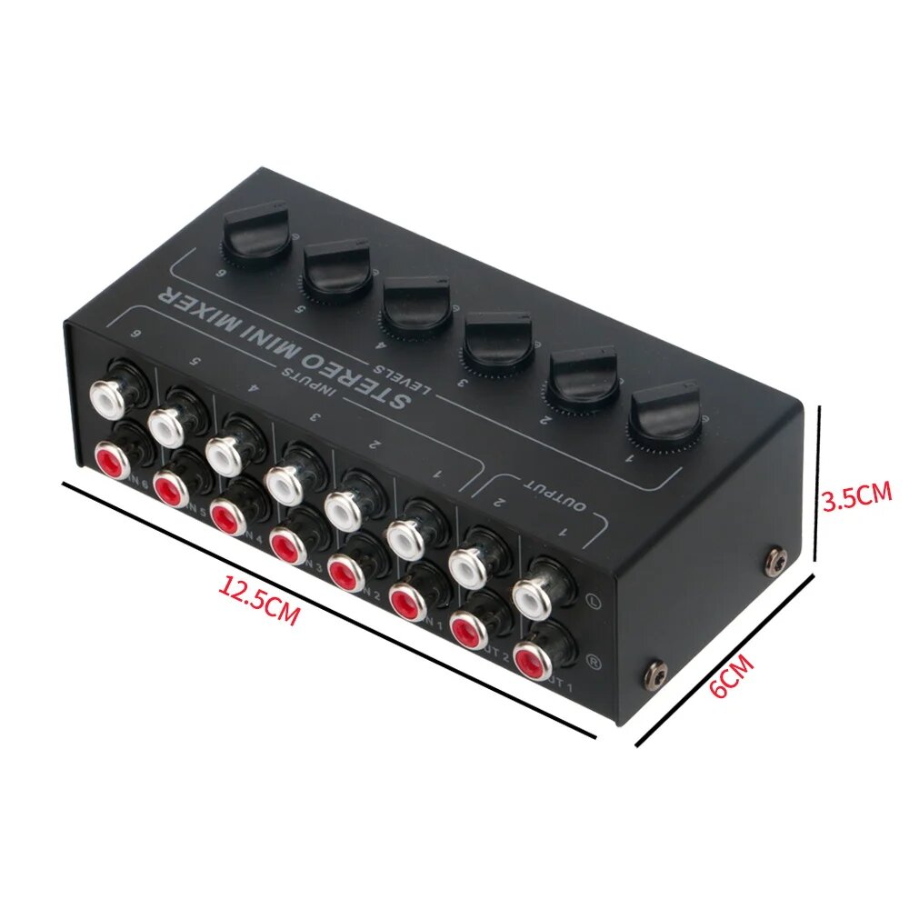 Купить Пассивный Миксер для аудио, 4, 6 каналов, профессиональный миксер для звуковой фантазии, портативный вход RCA, сверхнизкий уровень шума для живой студии