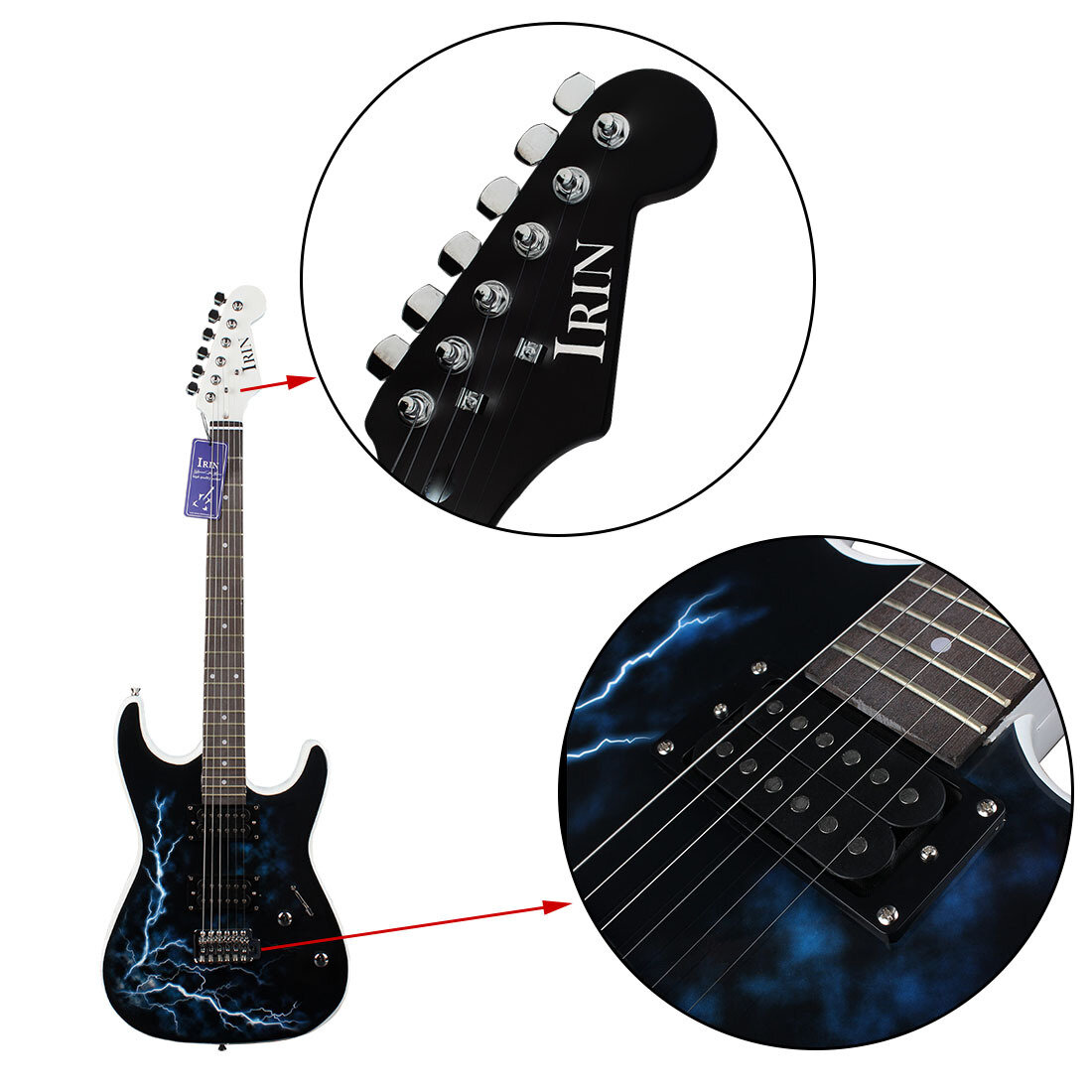 Купить Электрогитара IRIN "All-Black Thunderbolt Black", полностью черная, без защитной пластины