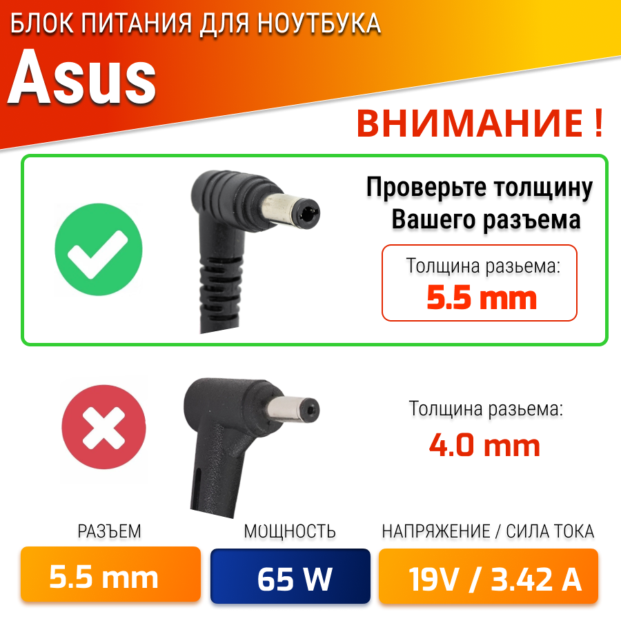 Блок питания зарядка для ноутбука Asus VivoBook S451LB 19V 3.42A 65W штекер 5.5x2.5 интересное: