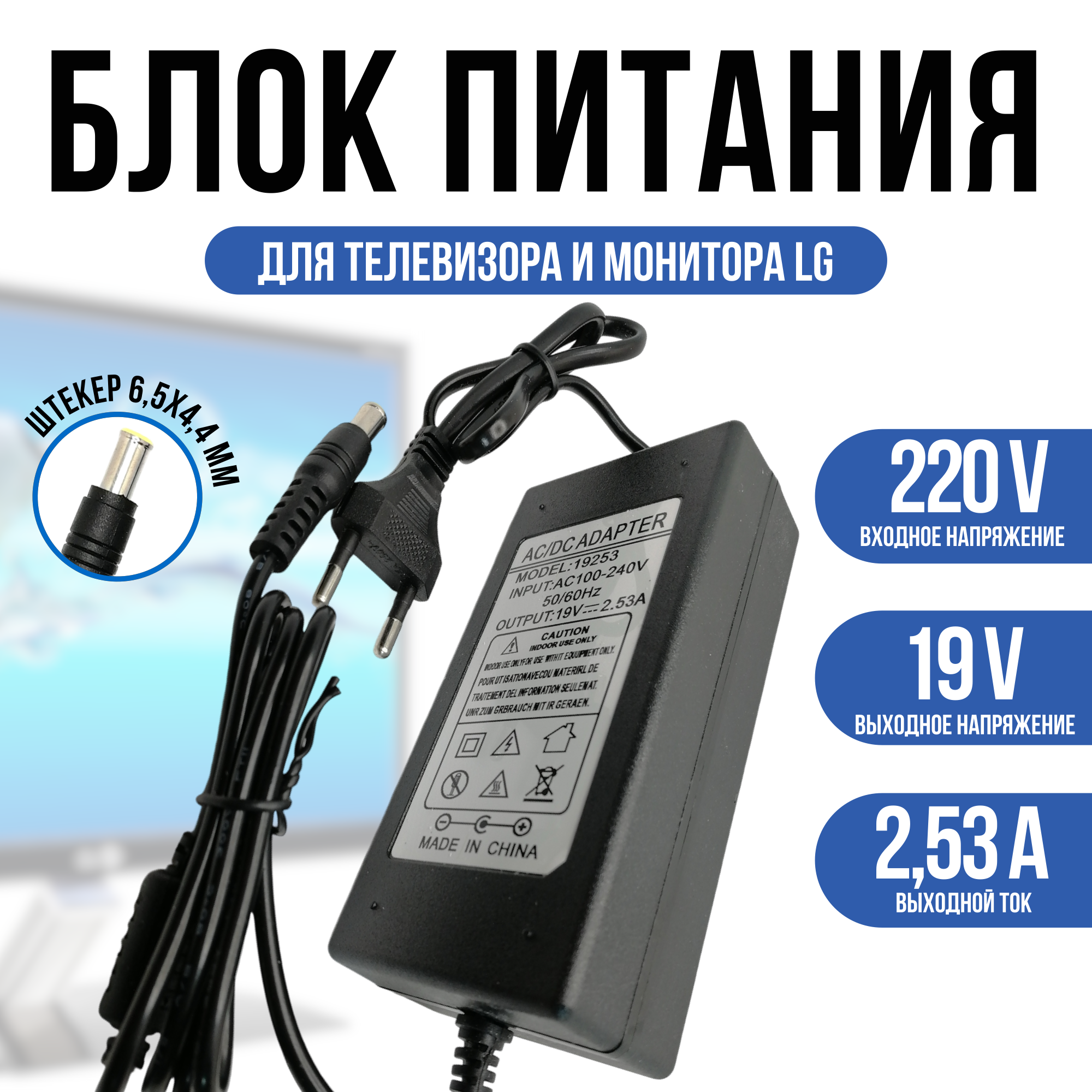 Адаптер блок питания 19V 2.53A 48W 6.5mm x 4.4mm для монитора и телевизора LG и Samsung интересное: