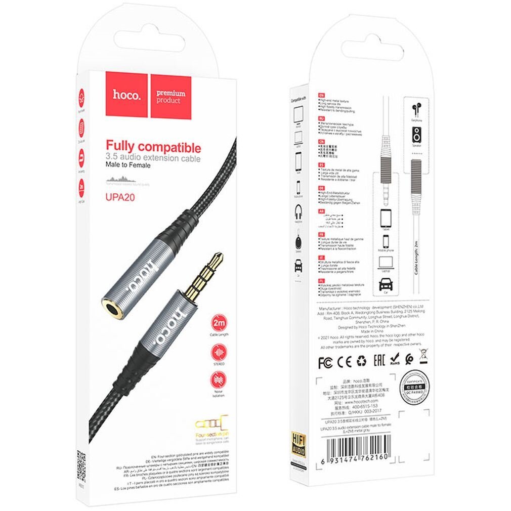 Купить AUX удлинитель, UPA20, 2m, HOCO, металлический серый