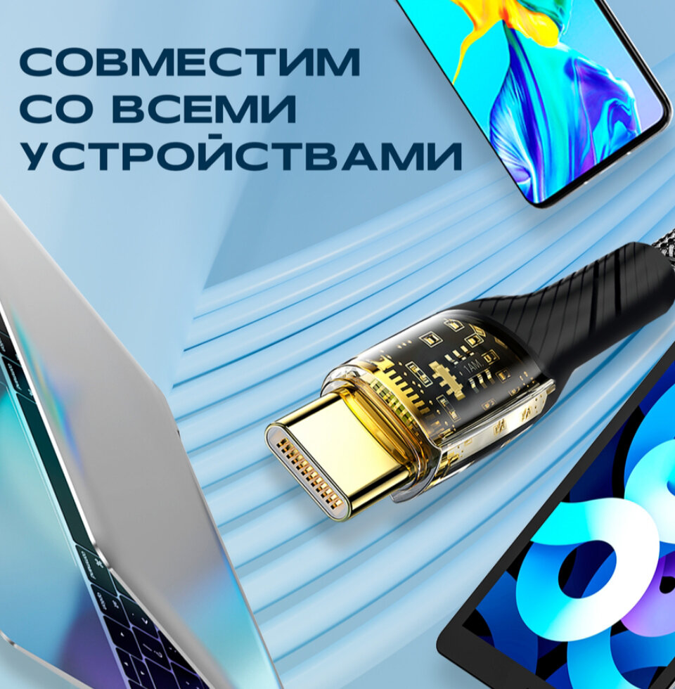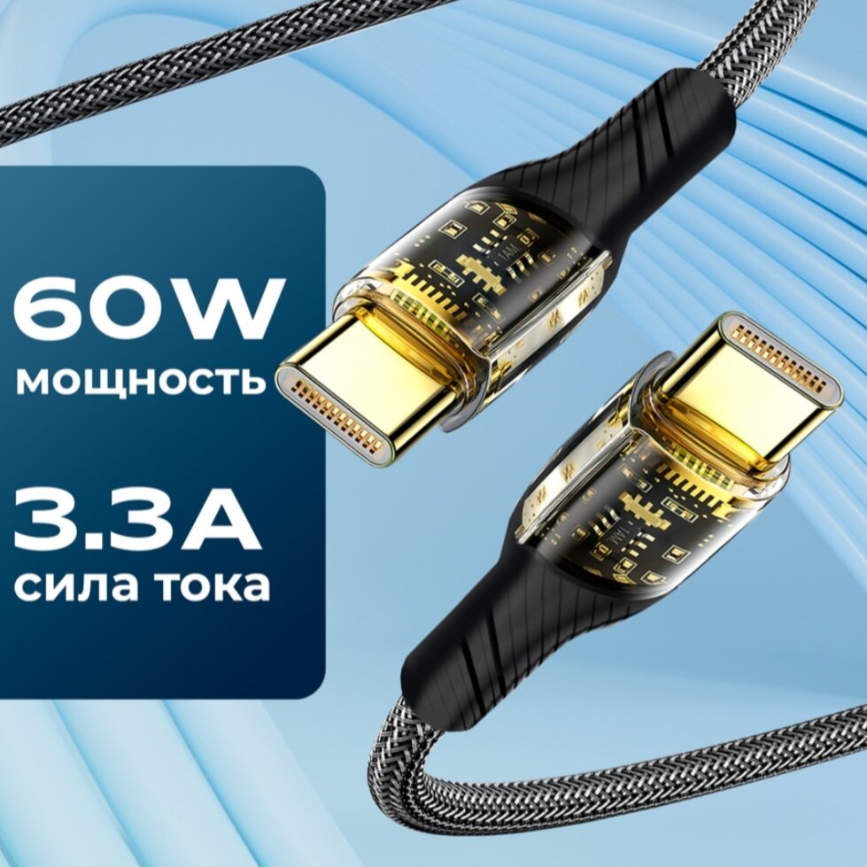 Кабель Type-C-Type-C с быстрой зарядкой и передачей данных, 60W, 3.3А, 1.2 м, E-mark чип, латунные коннекторы, провод для зарядки телефона, шнур тайп си (черный) интересное: