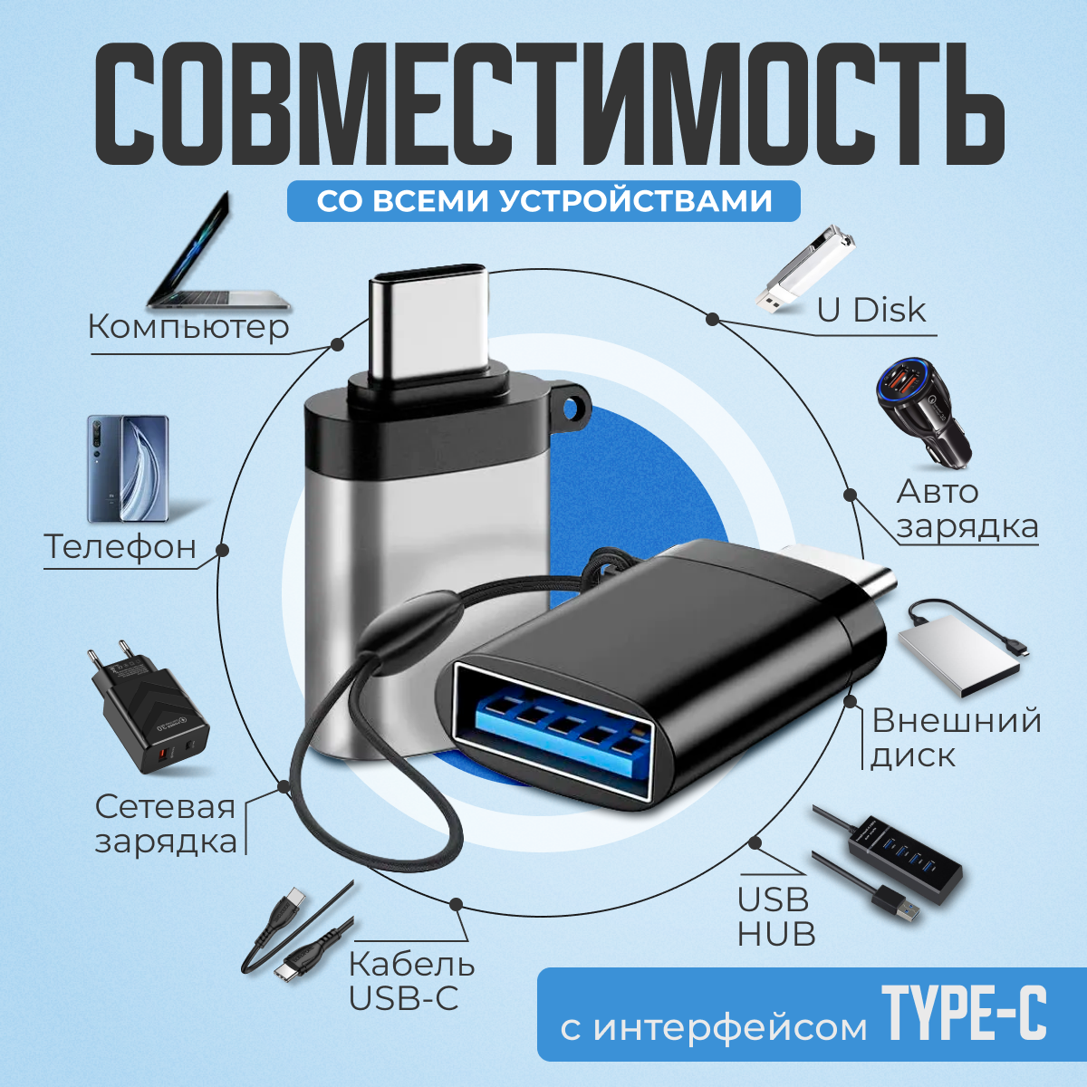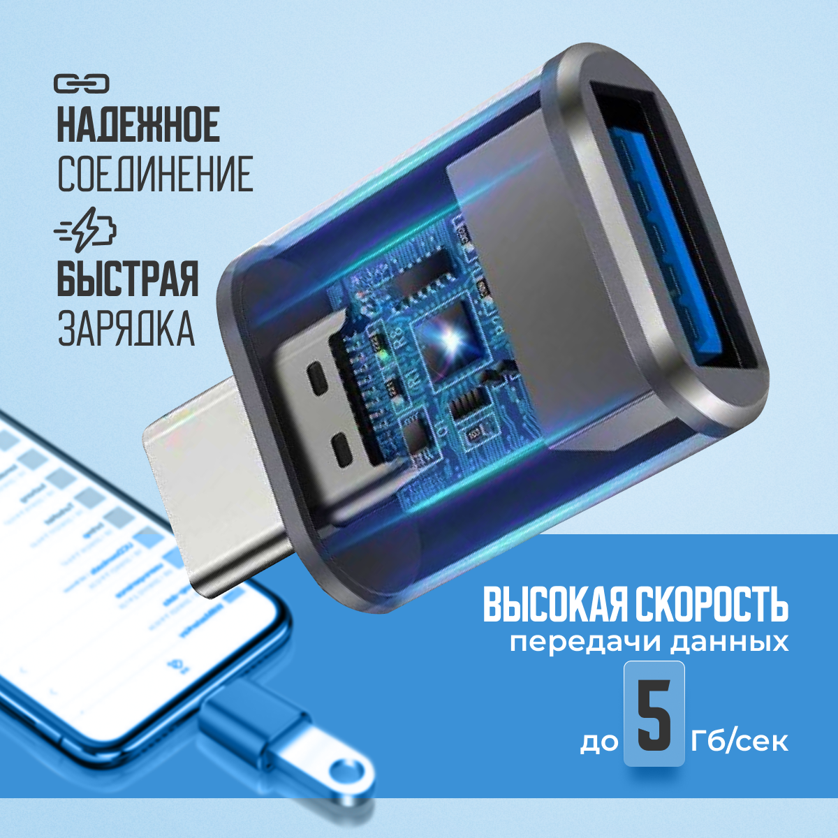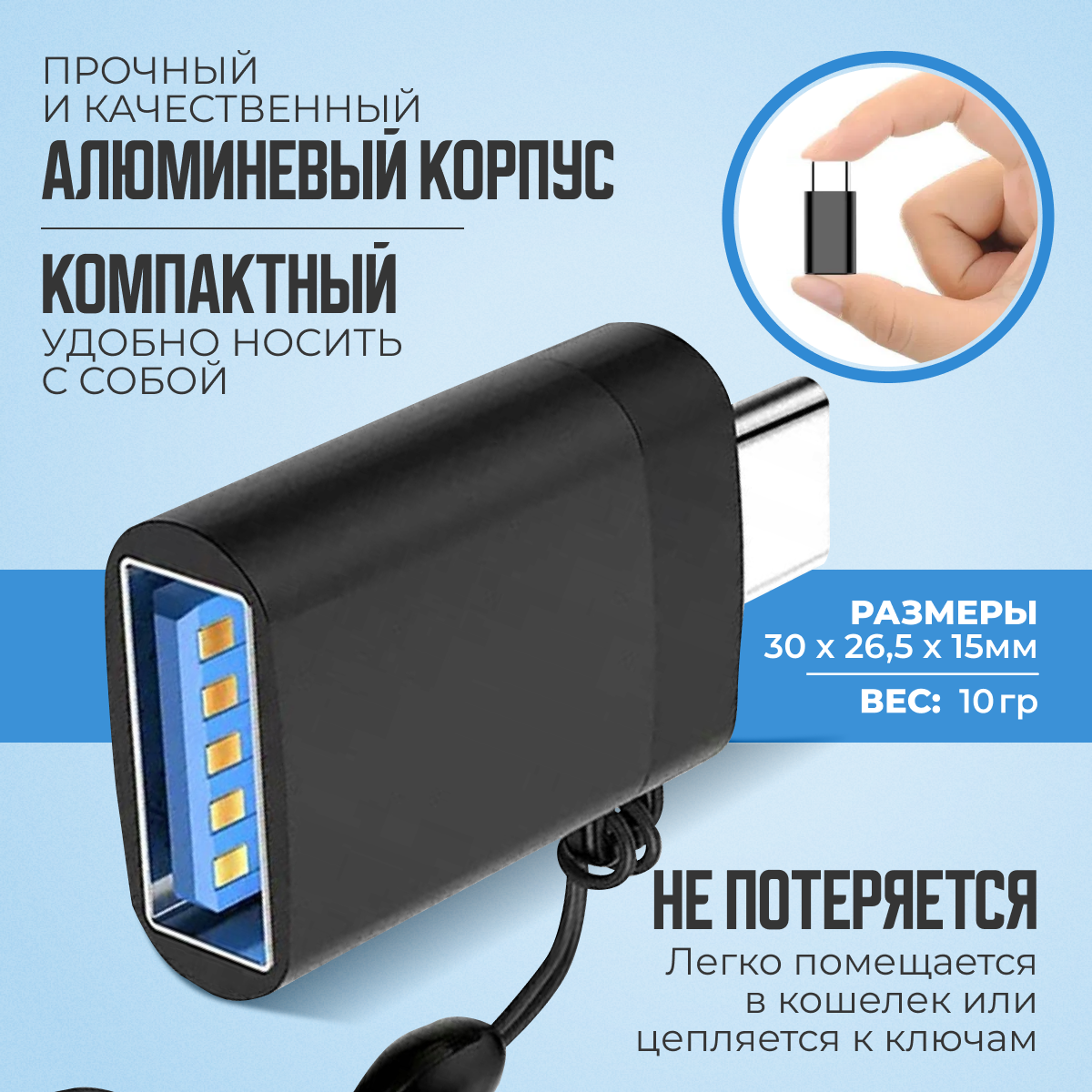 Переходник с Type C на USB 3.0, адаптер OTG тайп си для телефонов, планшетов, смартфонов и компьютеров, алюминий, черный интересное: