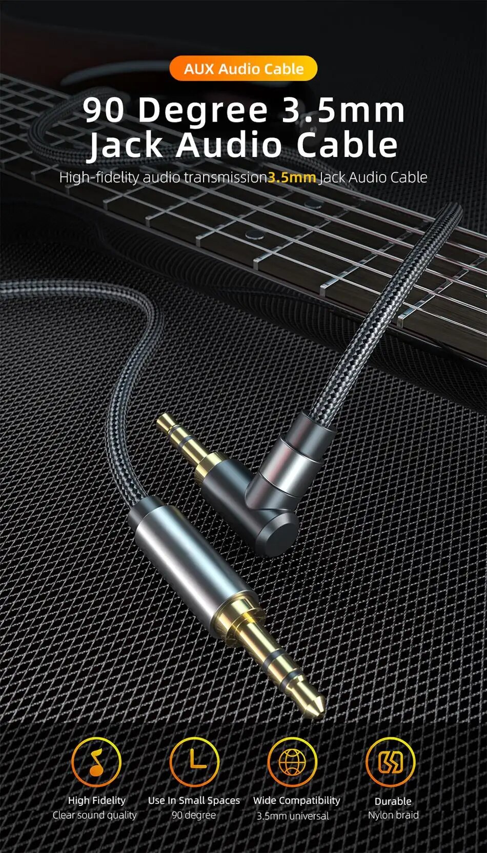 Угловой Aux кабель Essager 3.5 мм, 1.5 метра, аукс провод, кабель для наушников, аудио кабель 3.5 мм (Серый) интересное: