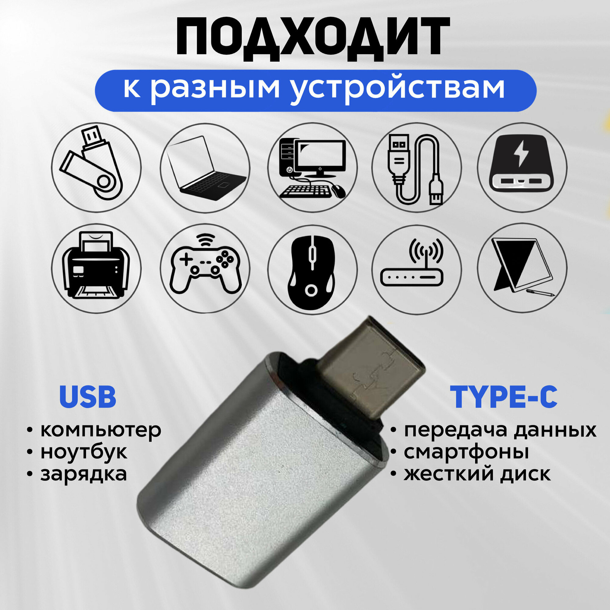 Переходник (адаптер) USB Type C – USB Type A, серебристый интересное: