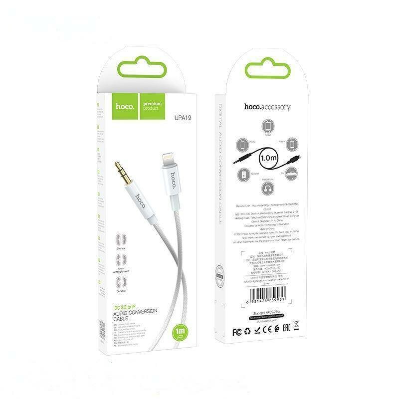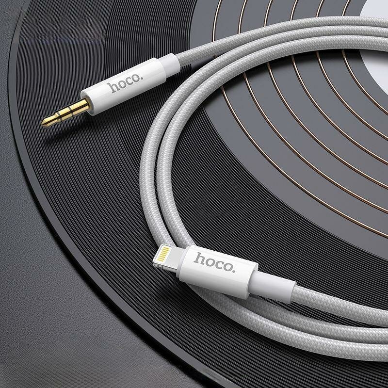 Кабель Hoco UPA19, Jack 3.5 мм (m) - Lightning, 1 м, нейлон, серебристый