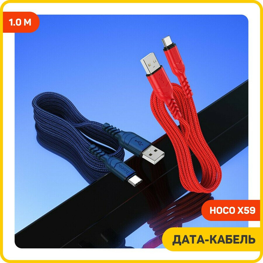 Дата-кабель Hoco X59 USB-Type-C, 1 м, синий