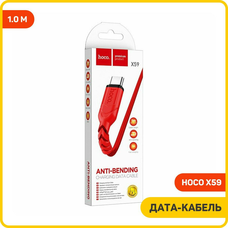 Купить Дата-кабель Hoco X59 USB-Type-C, 1 м, красный