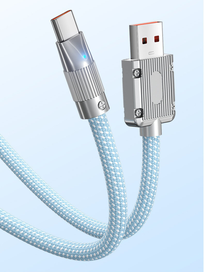 Кабель зарядный Type-C 120W, 6 Aмпер, 1.5 метра, индикатор, ремешок, быстрая зарядка для Huawei, Xiaomi, Samsung, Oppo (Голубой) интересное: