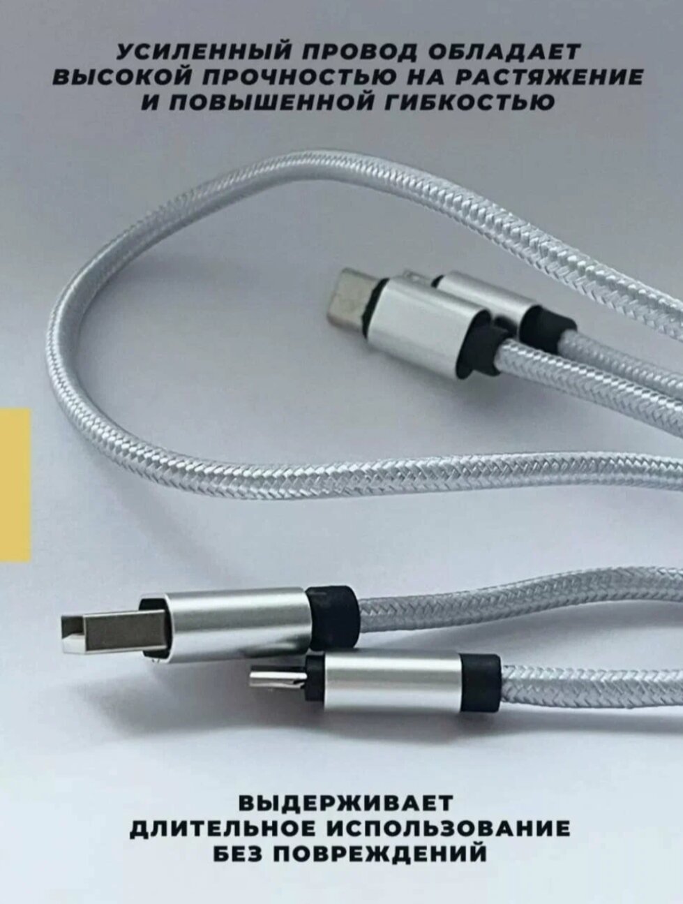 Зарядный кабель 3 в 1 универсальный для телефона с разъемами Type-С, Lightning, Micro-USB, серебристый интересное: