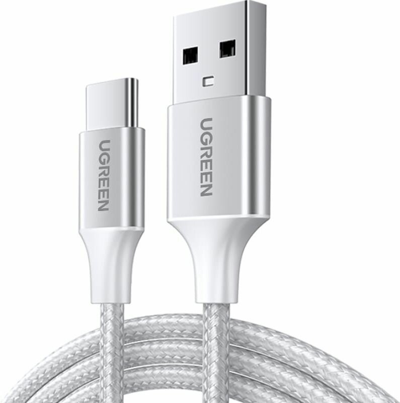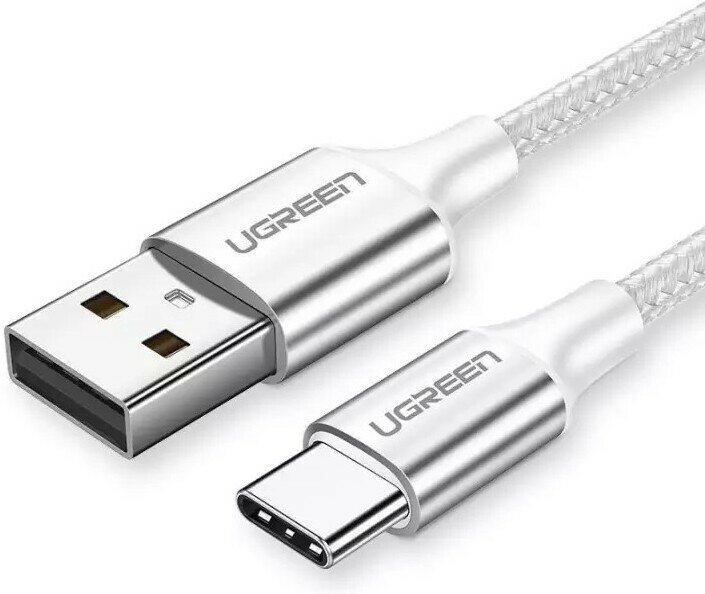 Кабель UGREEN US288 USB-A 2.0 to USB-C Cable Nickel Plating Aluminum Braid, 1 м. цвет белый (60131)