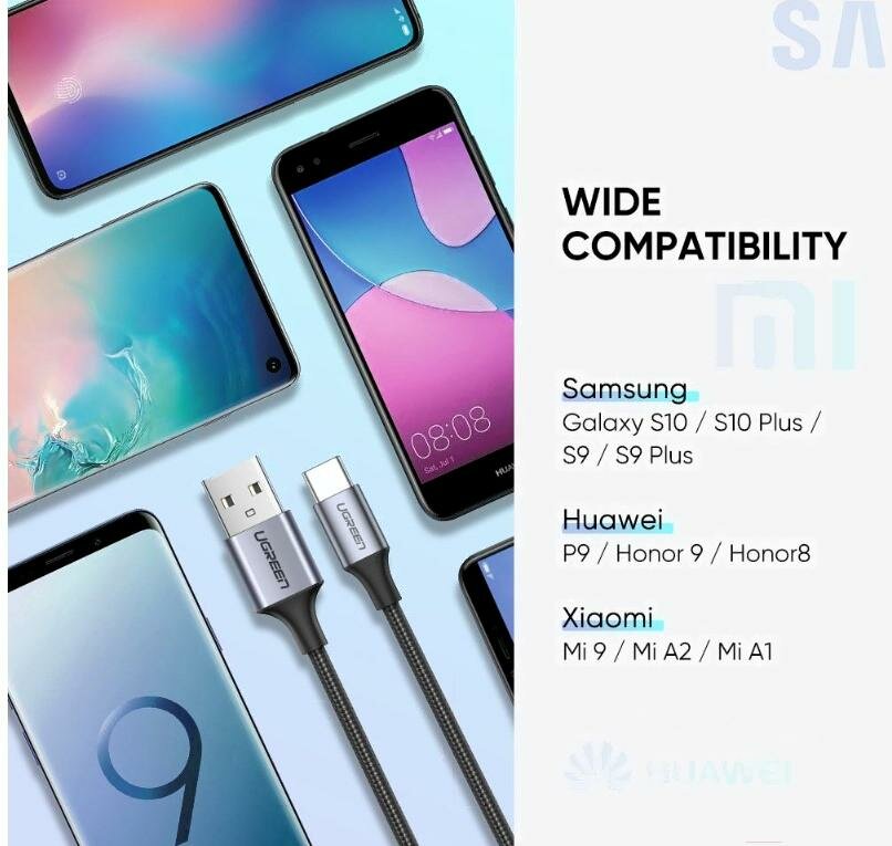 СохранитьКабель UGREEN US288 (60131) USB-A 2.0 to USB-C Cable Nickel Plating Aluminum Nylon Braid (1 метр) серебристый/белый интересное:
