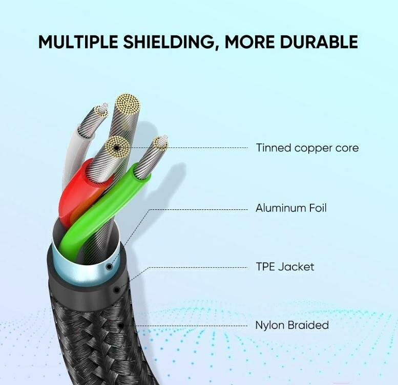 | Особенности | магнитный / плоский кабель / тканевая оплетка / экранированный кабель |